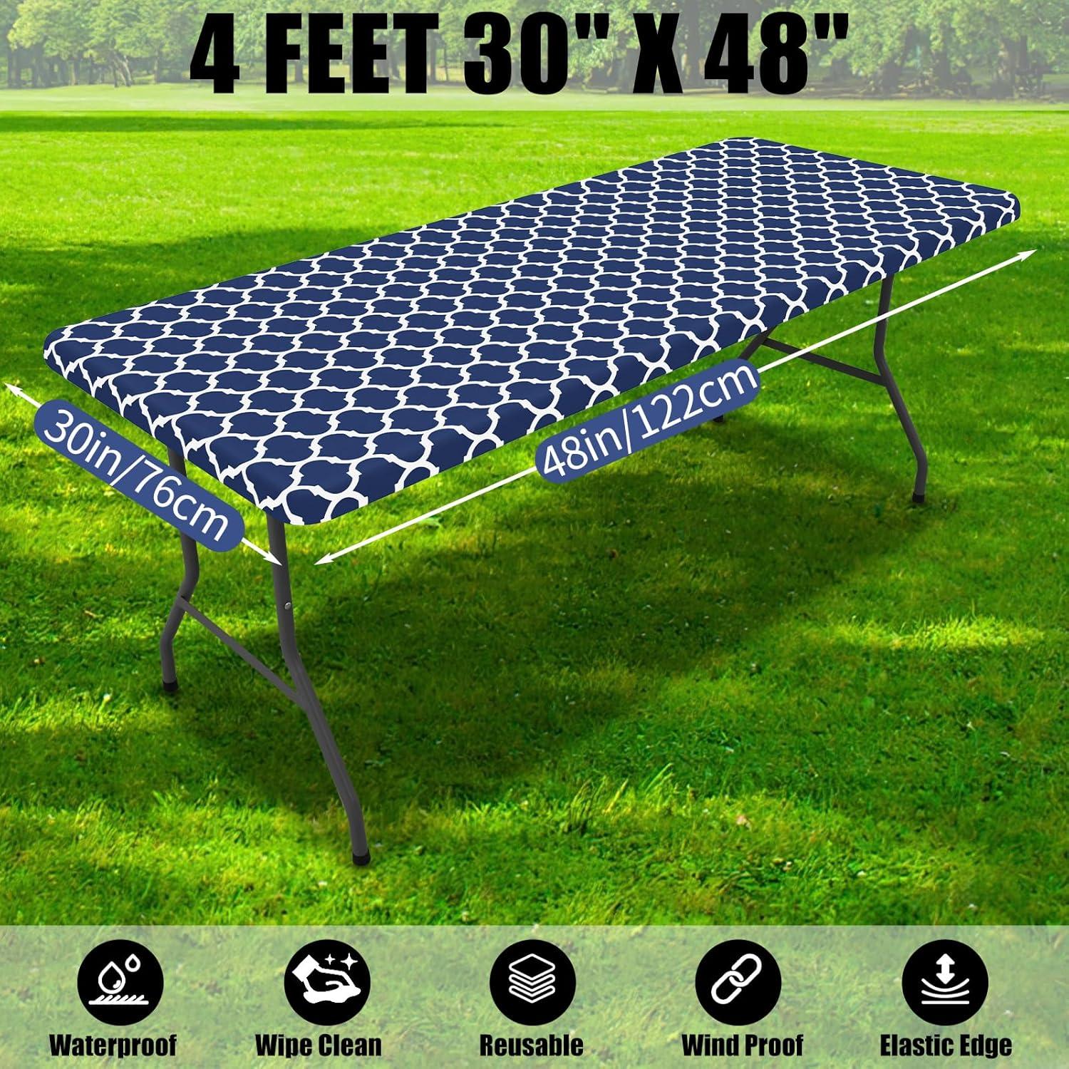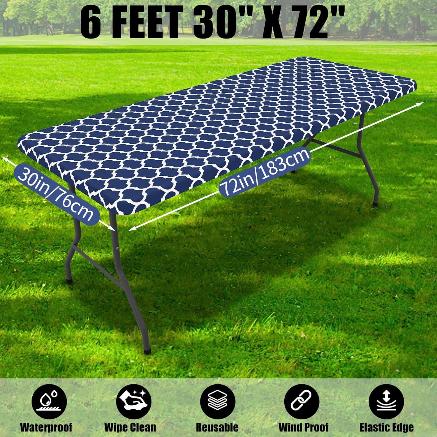 Smiry 2 Pack Rectangle Table Cloth 6 Foot, Waterproof Elastic Fitted Tablecloths, Windproof Washable Polyester Table Cover for Picnic, Camping, Outdoor (Black, 30"x72")(Navy)