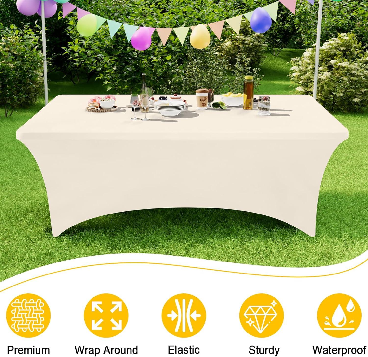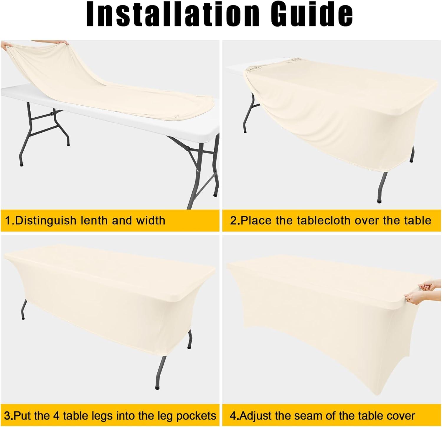 [Elastic & Full Coverage] Smiry elastic tablecloth is made of high-quality 90% polyester and 10% spandex, offering excellent stretchability. Its unique design features four elastic leg pockets that securely accommodate folding table legs, ensuring complete coverage of every part of the rectangular table.