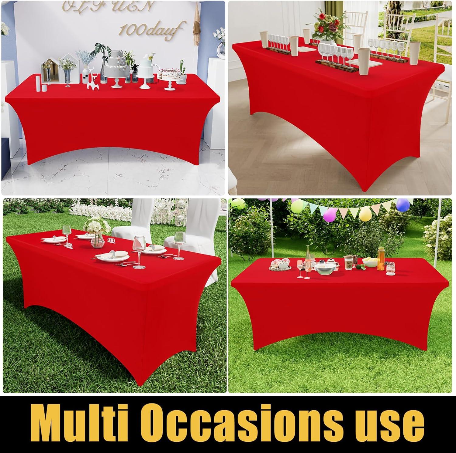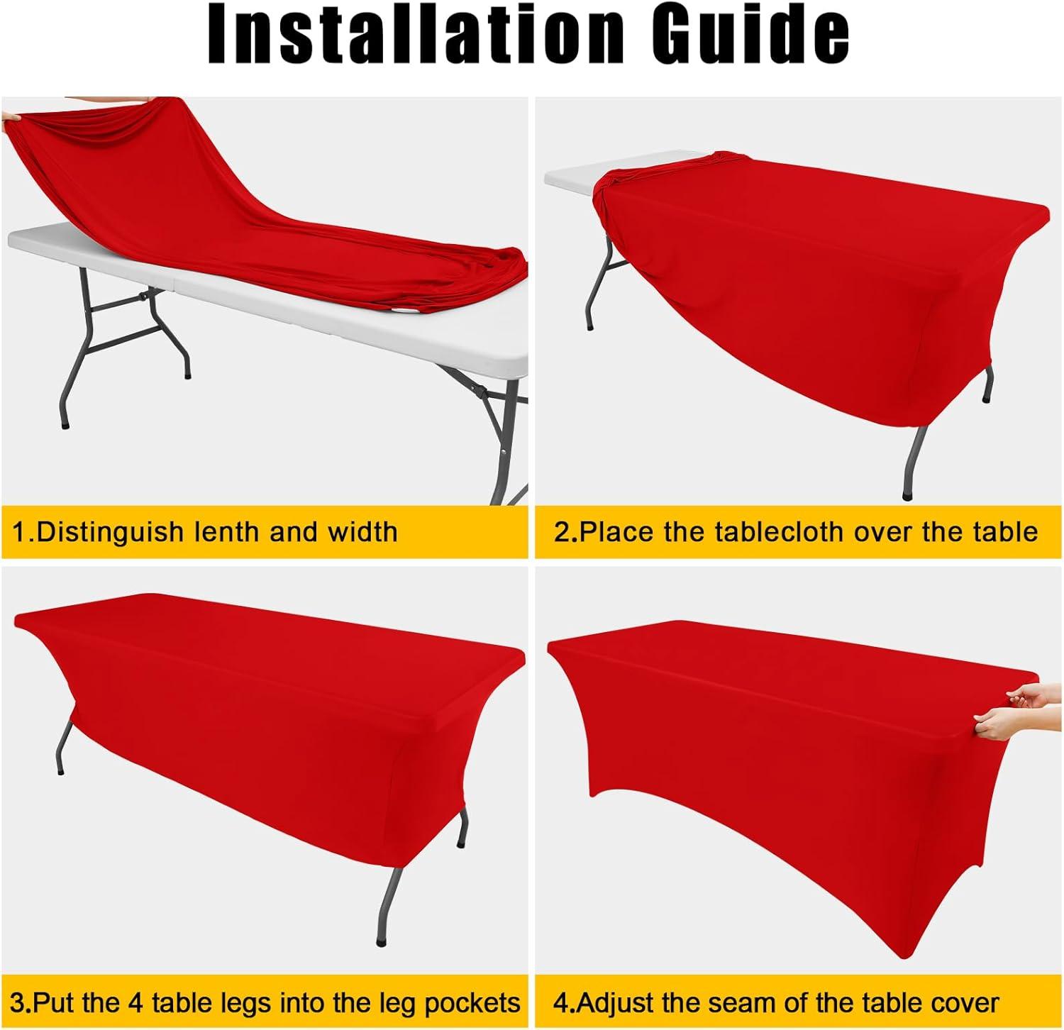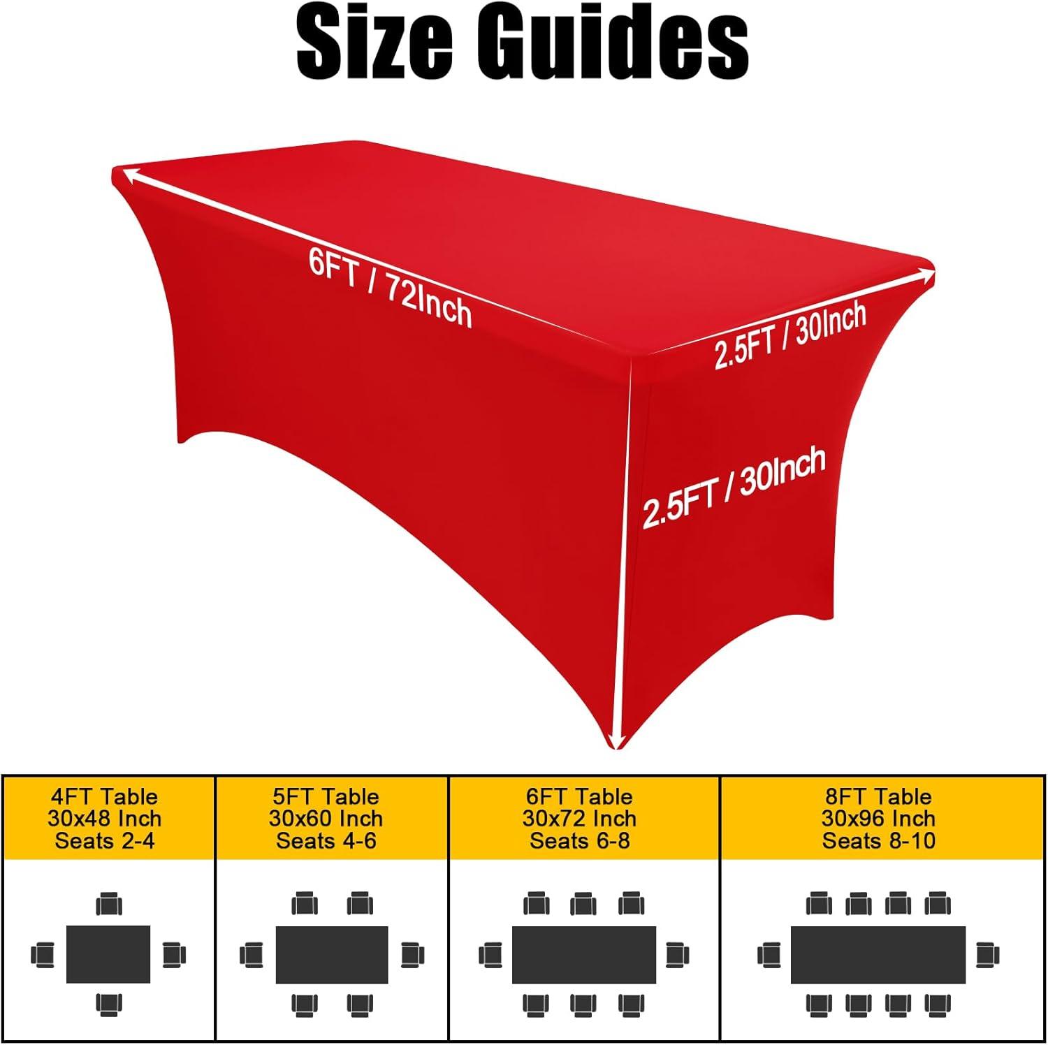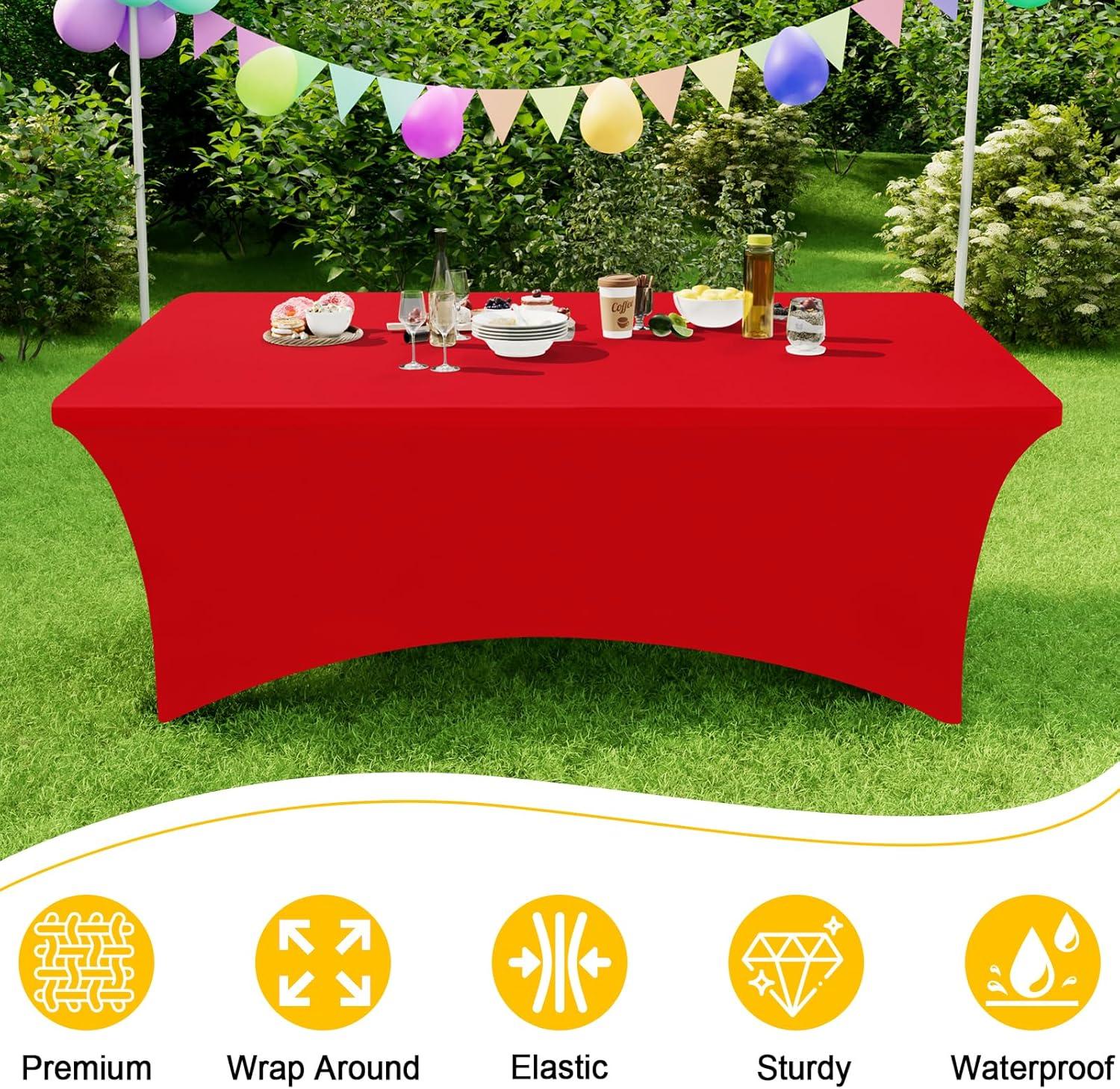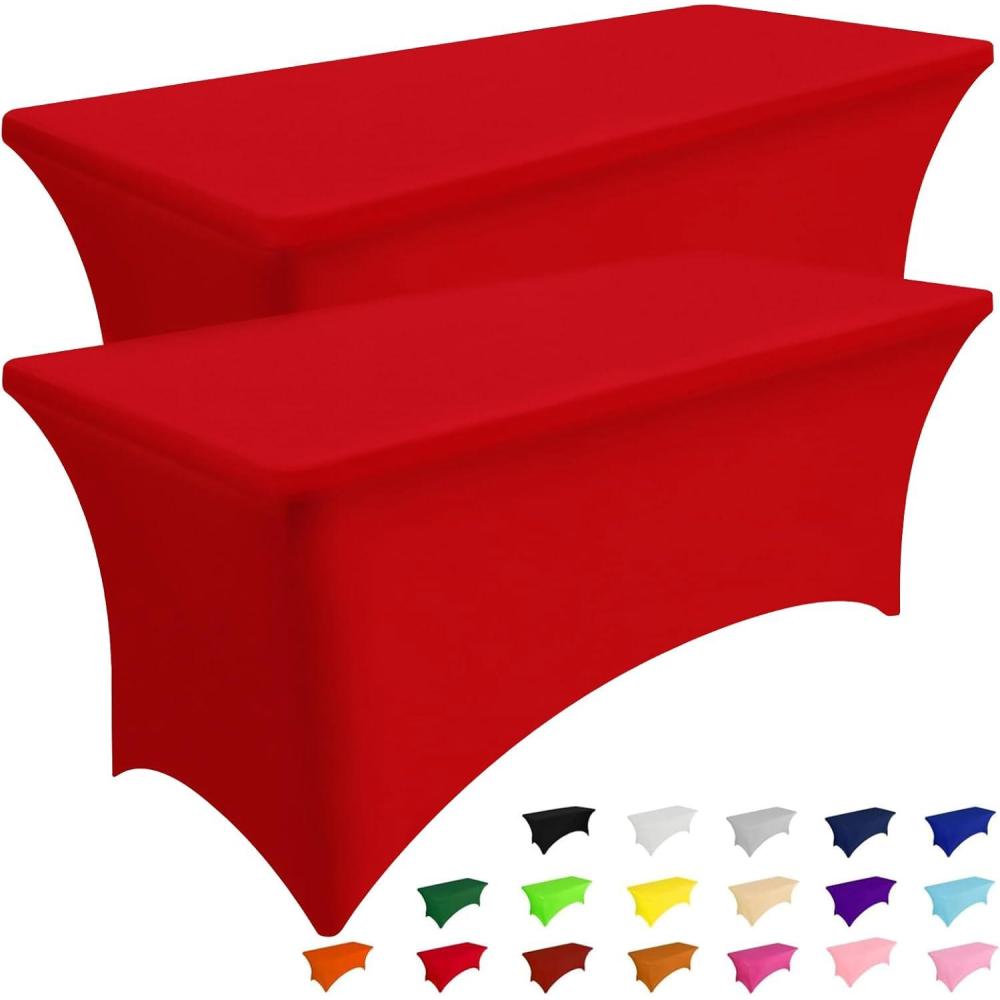 Smiry 2 Pack Spandex Table Cloth 6FT, Elastic Fitted Stretch Tablecloths for Rectangle Tables, Washable Table Cover for Outdoor, Wedding, Banquet & Parties (Navy, 72Lx30Wx30H Inch)(Red)