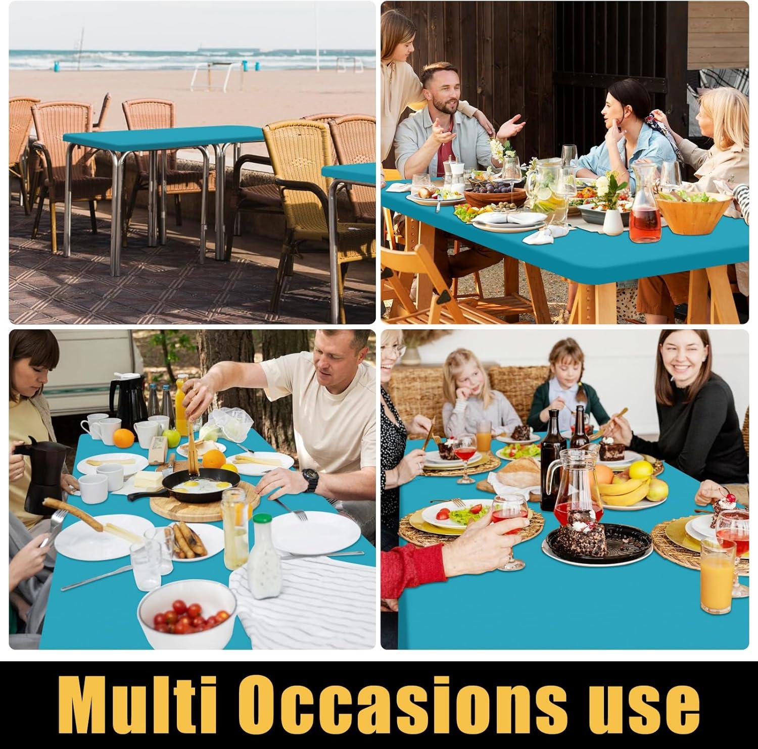 Smiry 4 Pack Rectangle Picnic Table Cloth, Waterproof Elastic Fitted Tablecloths, Washable Polyester Rectangular Patio Table Cover for Camping, Indoor and Outdoor (Black, 30"x72")(Teal)