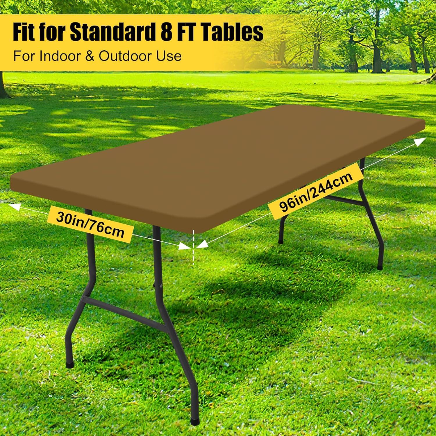 Smiry 6 Pack Rectangle Picnic Table Cloth, Waterproof Elastic Fitted Tablecloths, Washable Polyester Rectangular Patio Table Cover for Camping, Indoor and Outdoor (Black, 30″x72″)(Brown)
