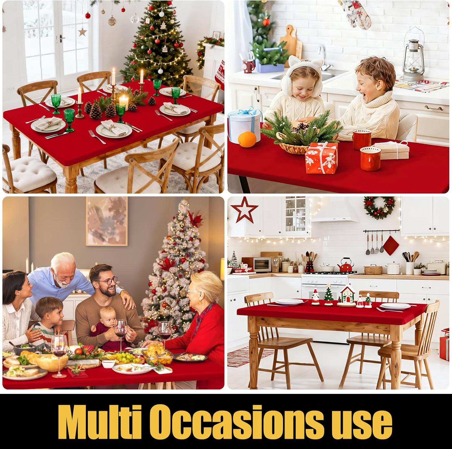 Smiry 6 Pack Rectangle Picnic Table Cloth, Waterproof Elastic Fitted Tablecloths, Washable Polyester Rectangular Patio Table Cover for Camping, Indoor and Outdoor (Black, 30"x72")(Red)