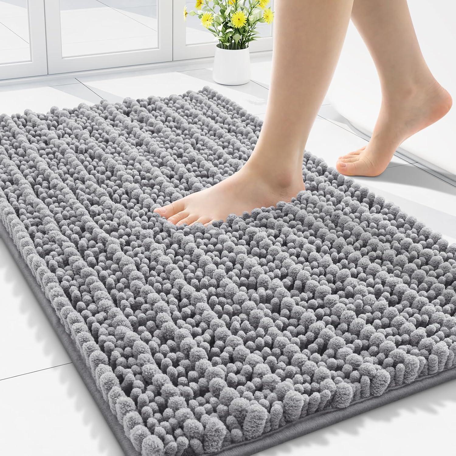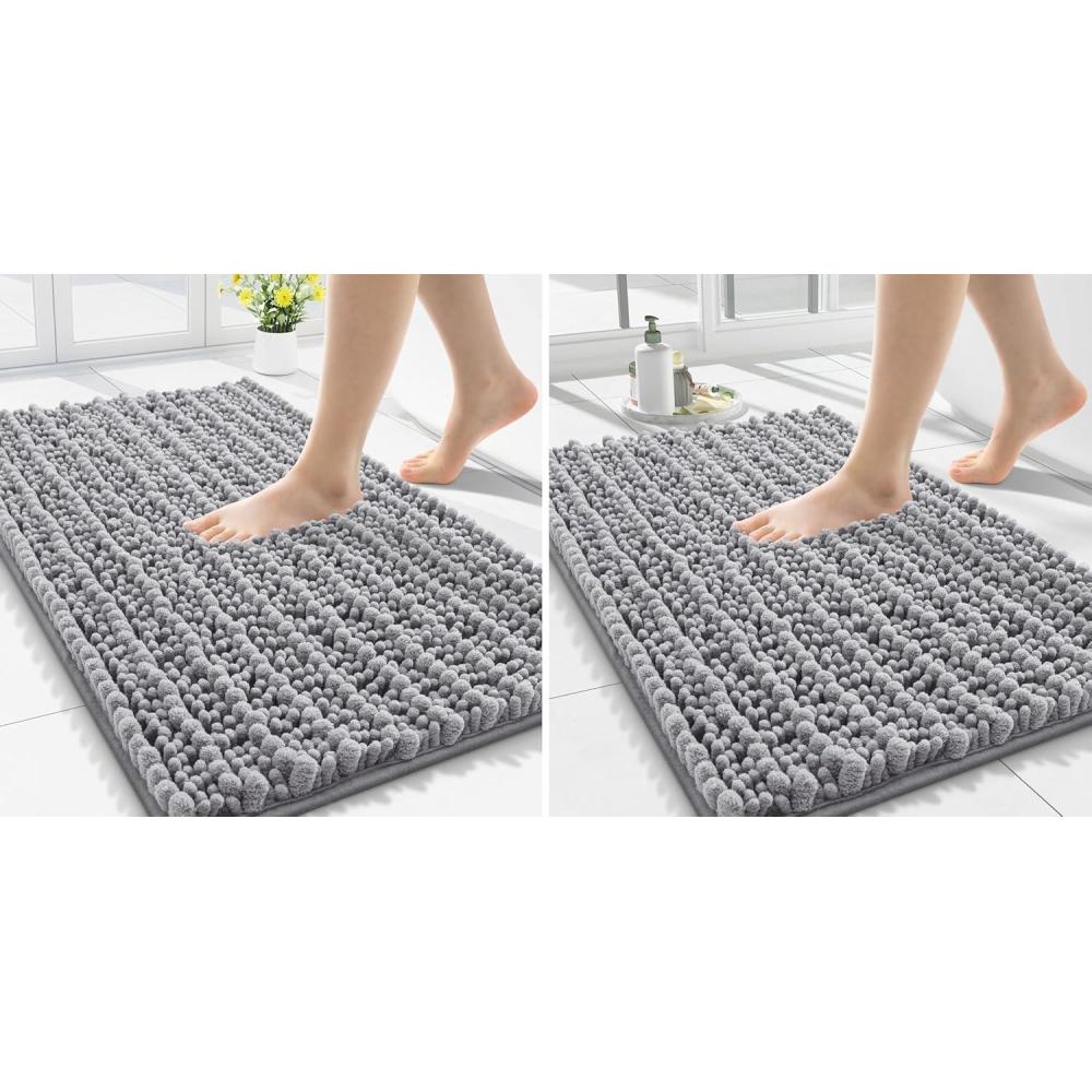 Smiry Bathroom Rugs Mat 30x20+24x16, Extra Soft Absorbent Chenille Bath Rugs, Non Slip Rubber Backing Machine Washable Quick Dry Bath Mats for Bathroom Floor, Tub, Shower, Home Decor Accessories, Grey