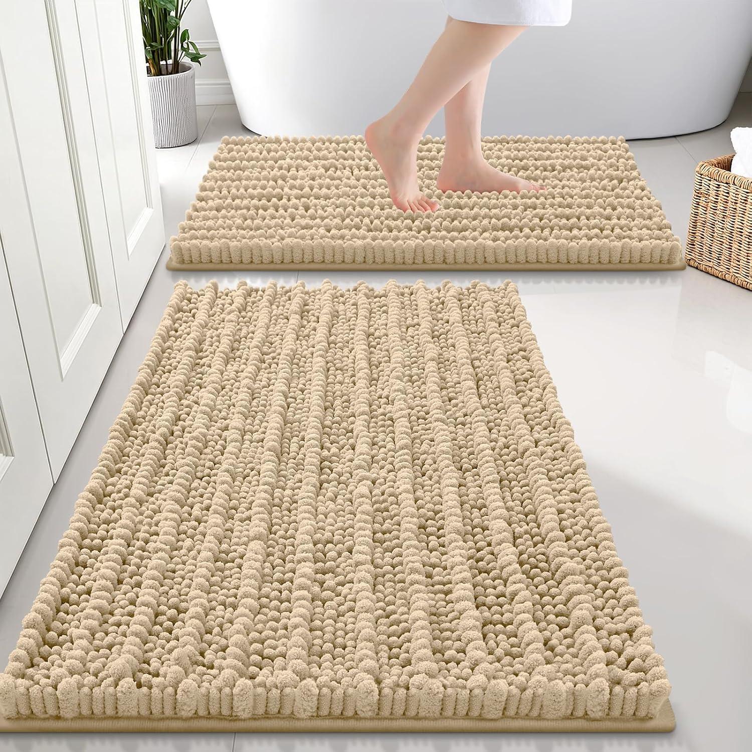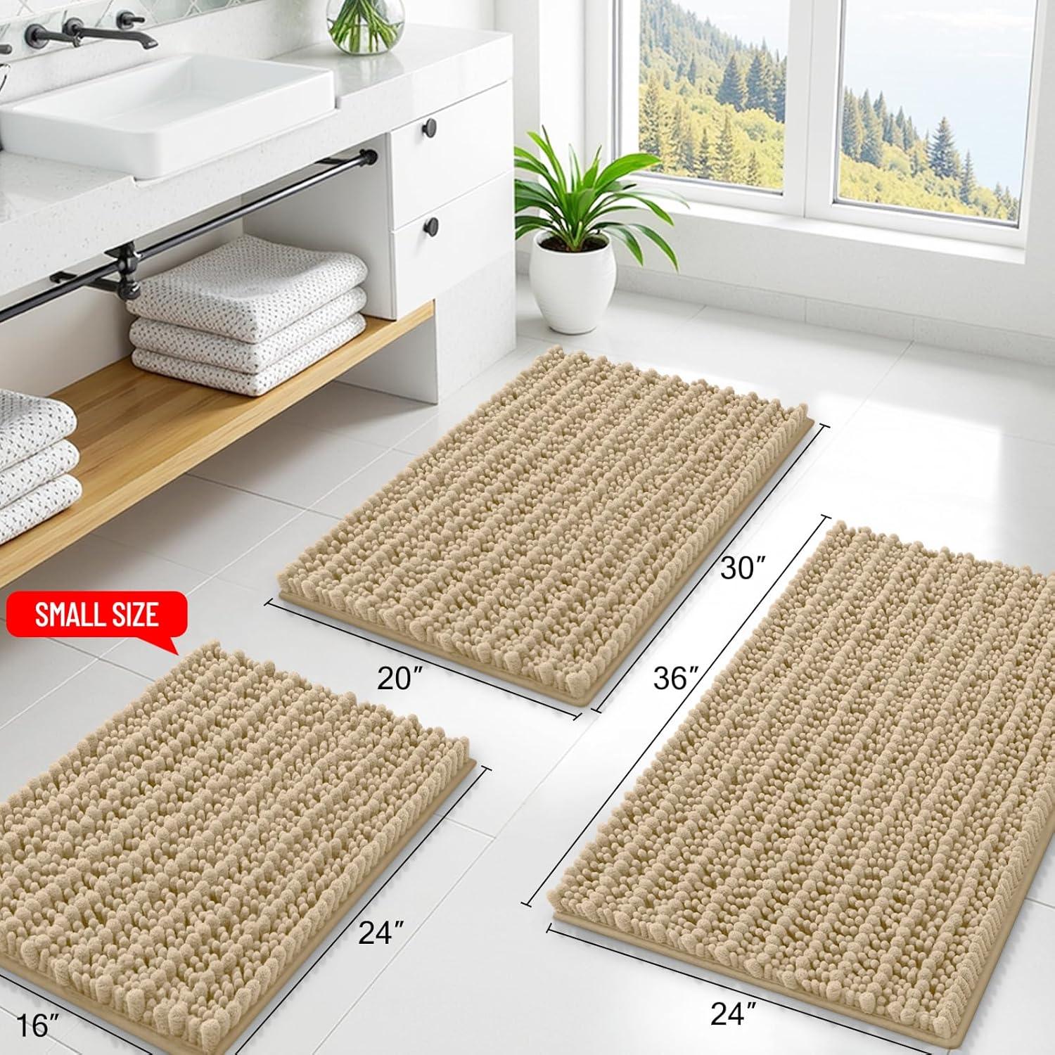 [Excellent Absorbent] Crafted with thousands of ultra-absorbent microfiber shags, Smiry Bathroom mats swiftly soak up moisture, preventing wet floors and ensuring a clean, dry environment. With deep pile design, these mats dry rapidly, ready for your next use.