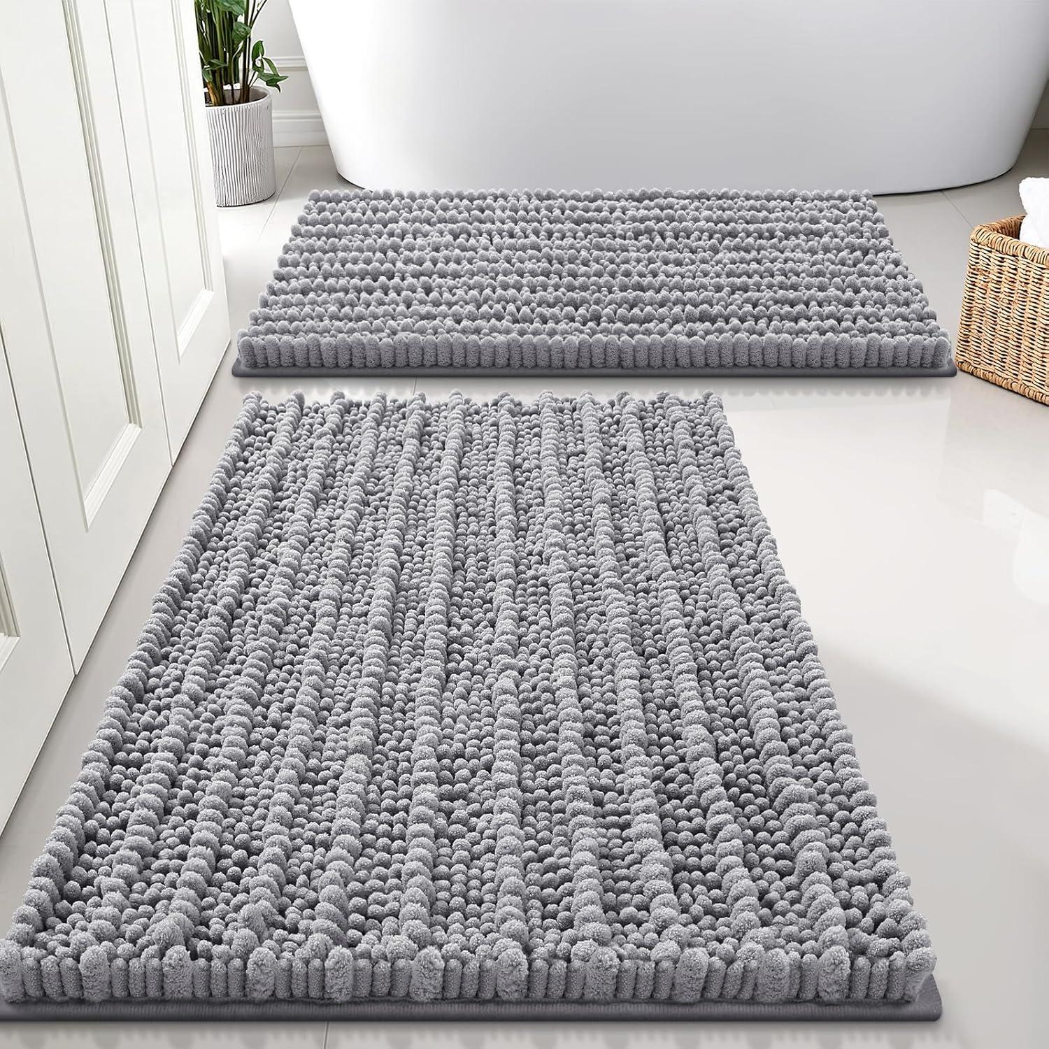 Smiry Bathroom Rugs Set 3 Piece, Extra Soft Absorbent, Non Slip Rubber Backing Machine Washable Quick Dry Chenille Bath Rug Set for Tub, Shower, and Floor 30" x 20"+30" x 20" +24" x 16" Grey