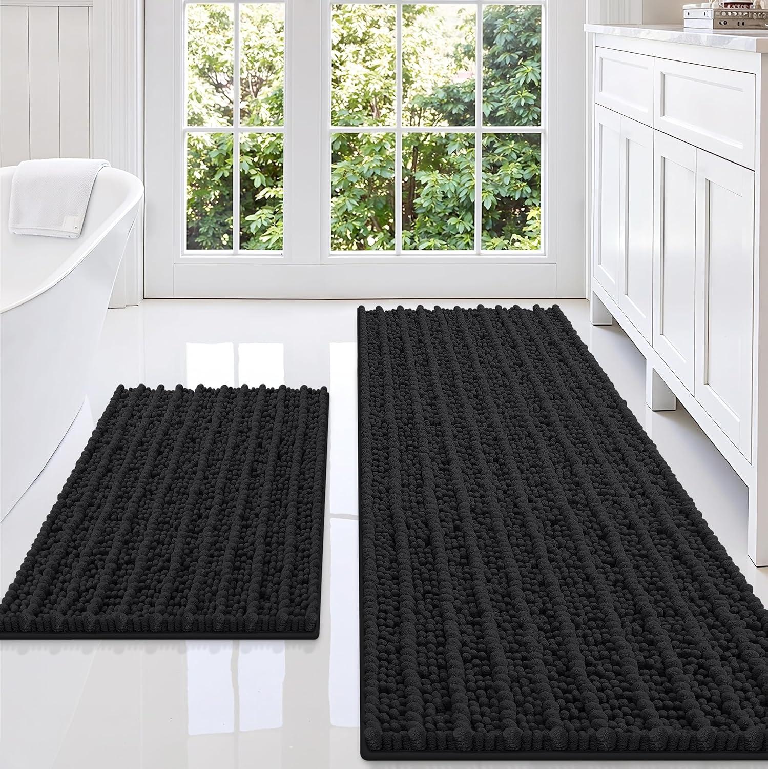 Smiry Bathroom Rugs Sets 2 Piece, Soft Absorbent, Non Slip Rubber Backing Machine Washable Quick Dry Chenille Bath Rug Set for Tub, Shower, and Floor (30" x 20" Plus 24" x 16", Beige)(Black)