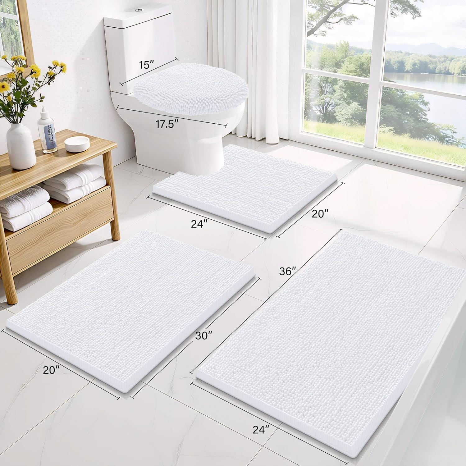 Smiry 3 Piece Bathroom Rugs Sets, soft chenille for cozy feet, with the quality, functionality and affordability we stand for. Features: [Soft & Comfortable] This bathroom rug set of 3 are made of well quality, luxurious chenille material. Step onto the plush softness of Smiry luxury bath rugs, treating your feet to unparalleled comfort & soft support every time you exit the shower or bathtub. [Excellent Absorbent] Crafted with thousands of ultra-absorbent microfiber shags, Smiry Bathroom rug swiftly soak up moisture, avoiding wet floors and ensuring a clean, dry environment. With deep pile design, these mats dry rapidly, ready for your next use. [Non-Slip Backing] Our bath rugs feature a non-slip backing made from good quality mesh PVC, providing a secure grip that avoid shifting and skidding. Important: Place on CLEAN DRY FLAT FLOOR ONLY to avoid slipping. Keep the rug's bottom dry at all times. [Easy to Clean & Care] Smiry bathroom rugs are effortlessly maintainable. Toss them in your washing machine and tumble dry on low for a hassle-free cleaning experience. The extra-soft microfiber material remains smooth, even after multiple washes. [Various Colors & Versatile Usage] Elevate your space with a touch of style. Choose from a variety of colors to seamlessly integrate Smiry bath rugs into your bathroom, shower, living room, bedroom, or any desired area. Experience warmth, support, and aesthetic appeal that enriches your surroundings. Choice for sizes: 24 x 16 inch/ 24 x 20 inch/ 30 x 20 inch/ 36 x 24 inch/ 47 x 20 inch. Choice for colors: Grey/ Beige/ Black/ Brown/ White/ Green/ Red/ Blue