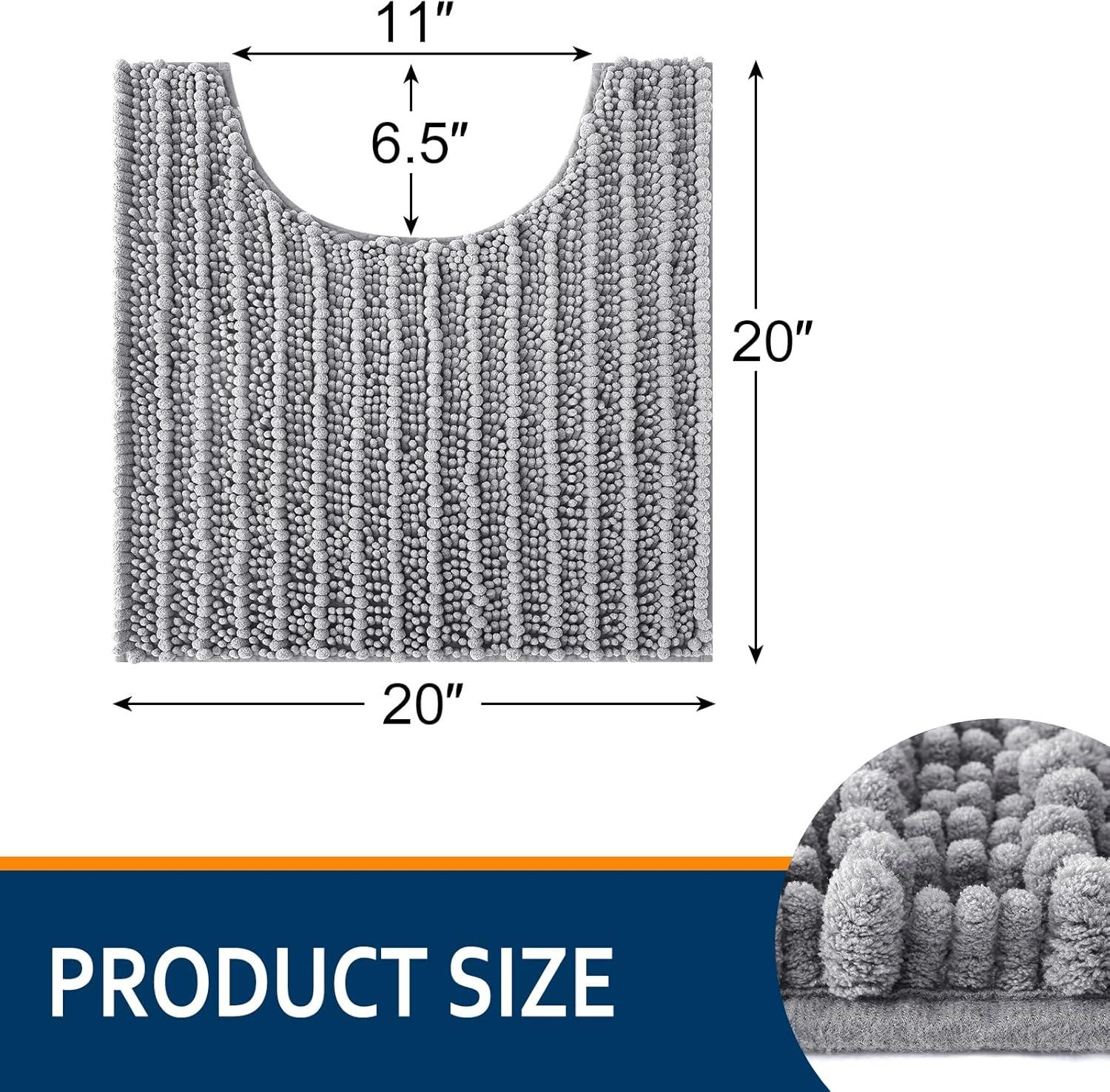 Smiry Bathroom Rugs U Shaped 20x20 and Toilet Lid Cover 17.5x15, Soft and Absorbent Bath Mat, Machine Washable, Non-Slip Plush Carpet Runner for Tub, Shower, and Floor, Home Decor,Grey