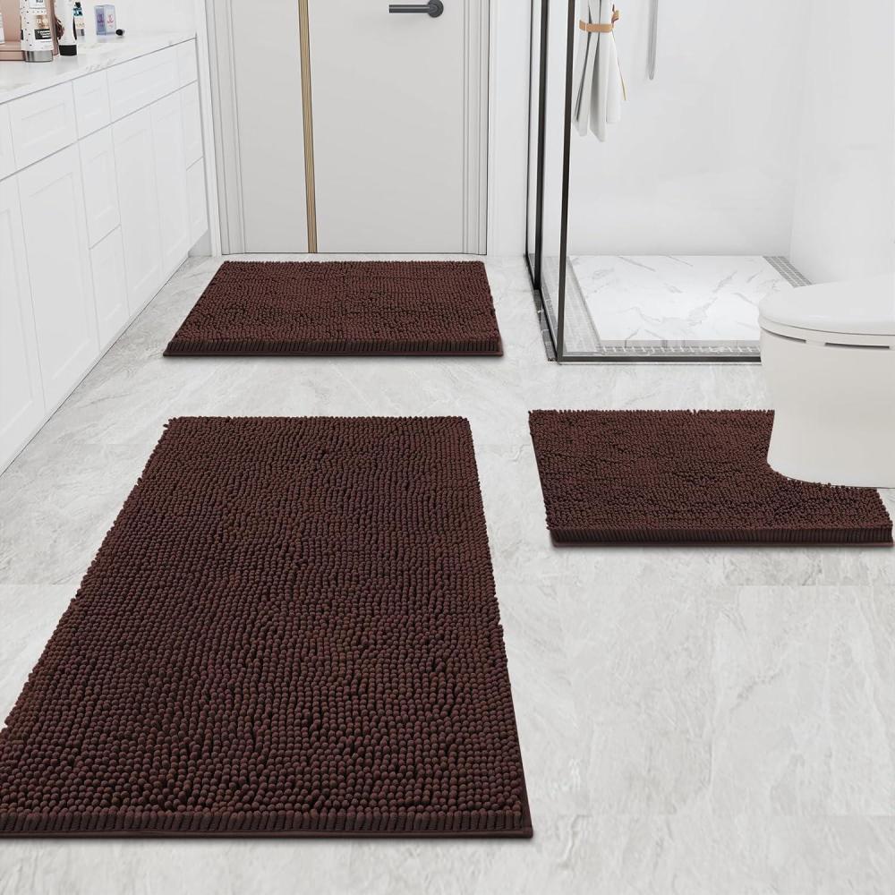 [Non-Slip Backing] Our bath rugs feature a non-slip backing made from high-quality mesh PVC, providing a secure grip that prevents shifting and skidding. Important: Place on CLEAN DRY FLAT FLOOR ONLY to avoid slipping. Keep the rug's bottom dry at all times.