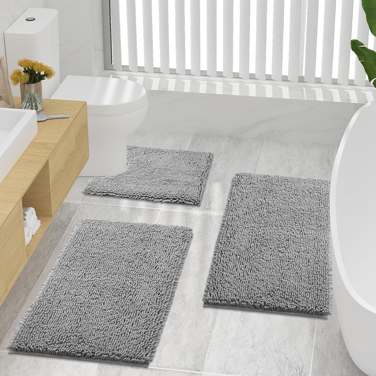 imageSmiry Bathroom Rugs Set 3 Piece Extra Soft Absorbent Non Slip Rubber Backing Machine Washable Quick Dry Chenille Bath Rug Set for Tub Shower and Floor 36quot x 24quot30quot x 20quot 24quot x 16quot Grey
