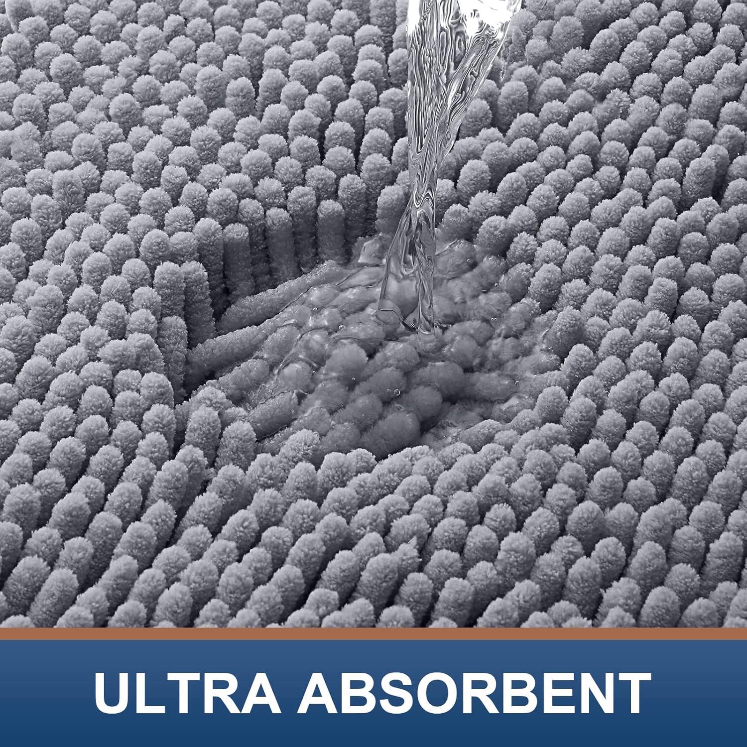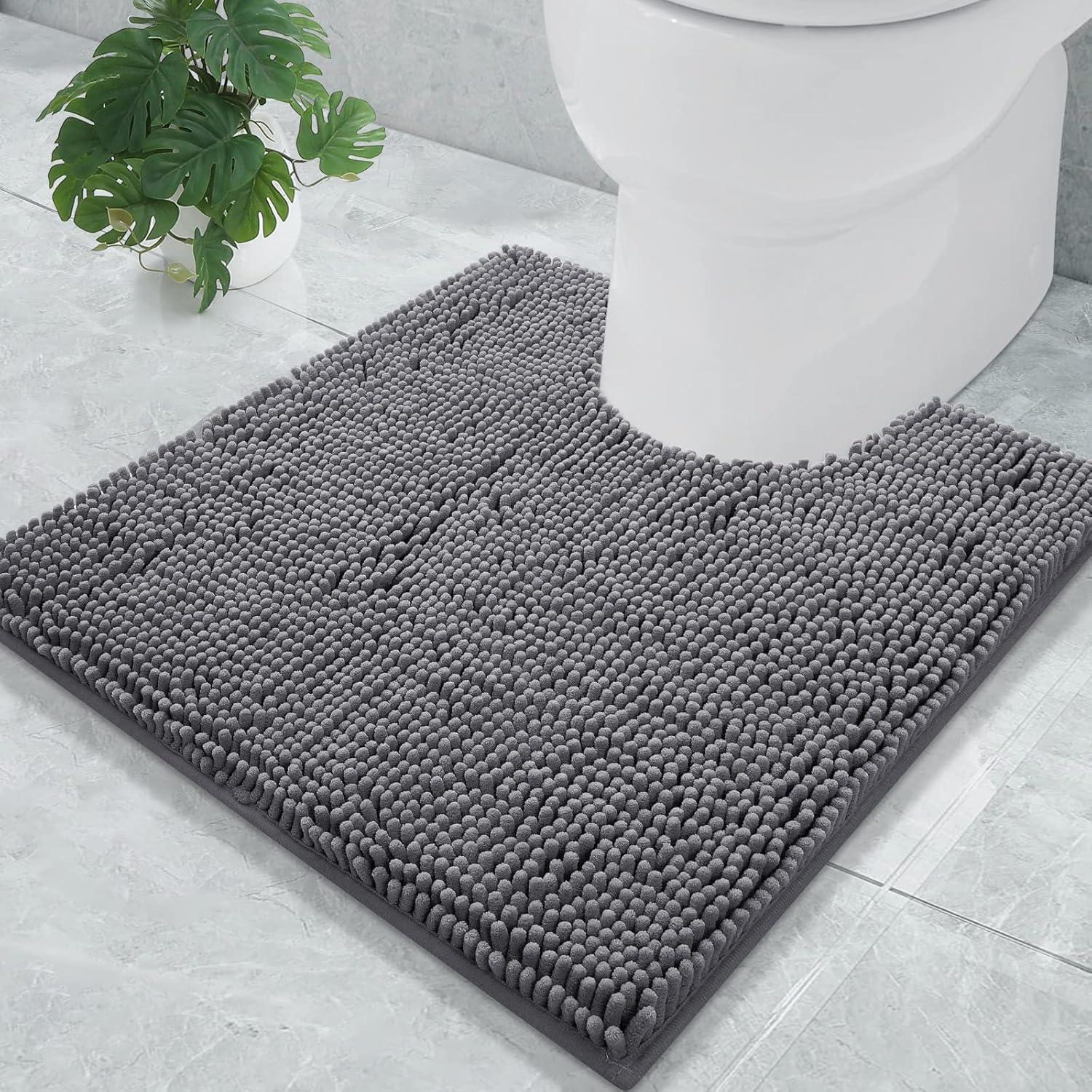 Smiry Chenille Bathroom Rugs 24x16 and U-Shaped Toilet Bath Rugs 20x20, Extra Soft and Absorbent Shaggy Bath Mat, Machine Washable, Non-Slip Plush Carpet, Grey