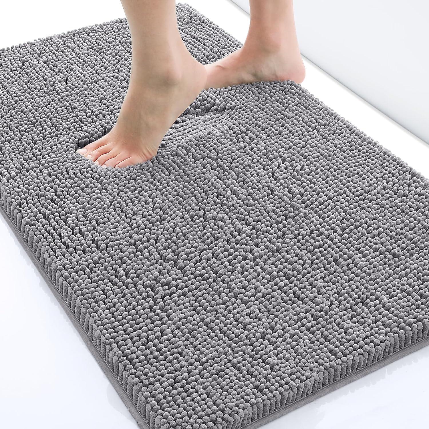 Smiry chenille bathroom rugs pamper your feet with the softest, most comfortable chenille material; the thick fleece helps to soothe your feet and keep your toes warm away from the cold floor below. Features: Super soft and comfortable Anti-skid backing with anti-slip PVC base, the bath mat has better durability and slip resistance. It protects you and your family from potential falls in the bathroom. Ultra-absorbent: The bath mat with dense chenille fleece trap extra moisture to help keep your floors clean when you step out of the bath, shower or stand in front of the sink. Machine washable: The materials allow you to machine wash and dry without worrying. Material: Premium chenille Colors and sizes: Colorful rugs of sufficient size can perfectly match your bathroom, kitchen, laundry room, home entrance, etc. Will the door open unobstructed if the mat is placed in the doorway? Smiry bathroom rugs is a very soft chenille rug with 1.18 inches high. The soft flexibility allows swinging doors to be opened easily, you will also need to measure the height of the door to the floor in order to choose the right item.