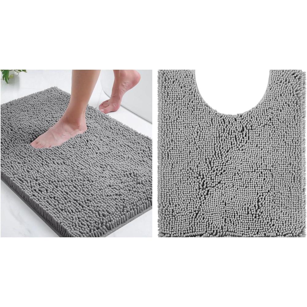 Smiry Bathroom Rugs Mat Set 2 Piece, 24X16+U-Shaped 24×20, Extra Soft Absorbent, Non Slip Rubber Backing Machine Washable Quick Dry Chenille Bath Rug Set for Tub, Shower, and Floor,Grey