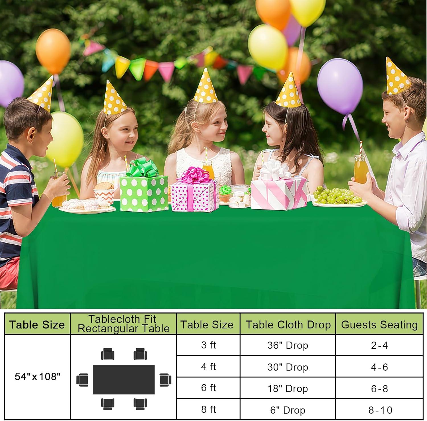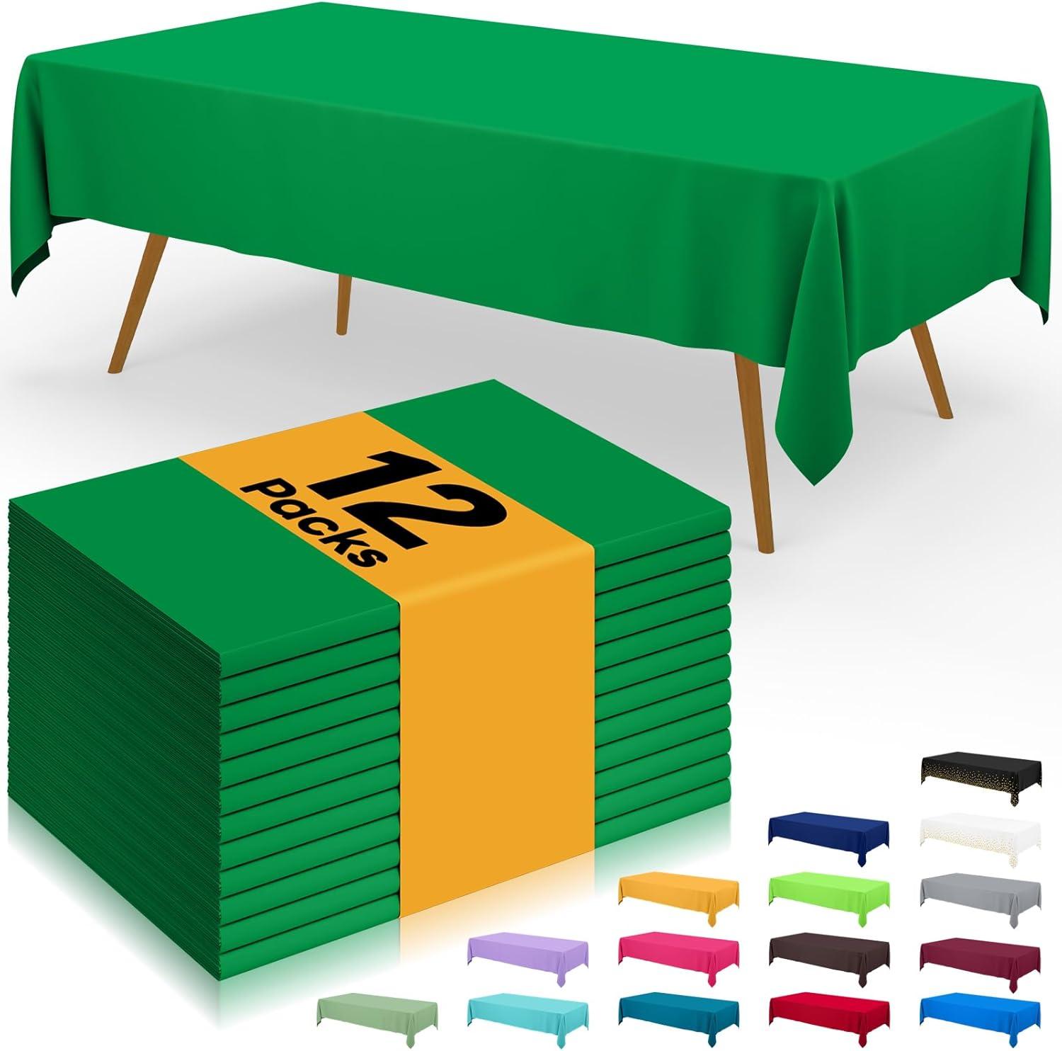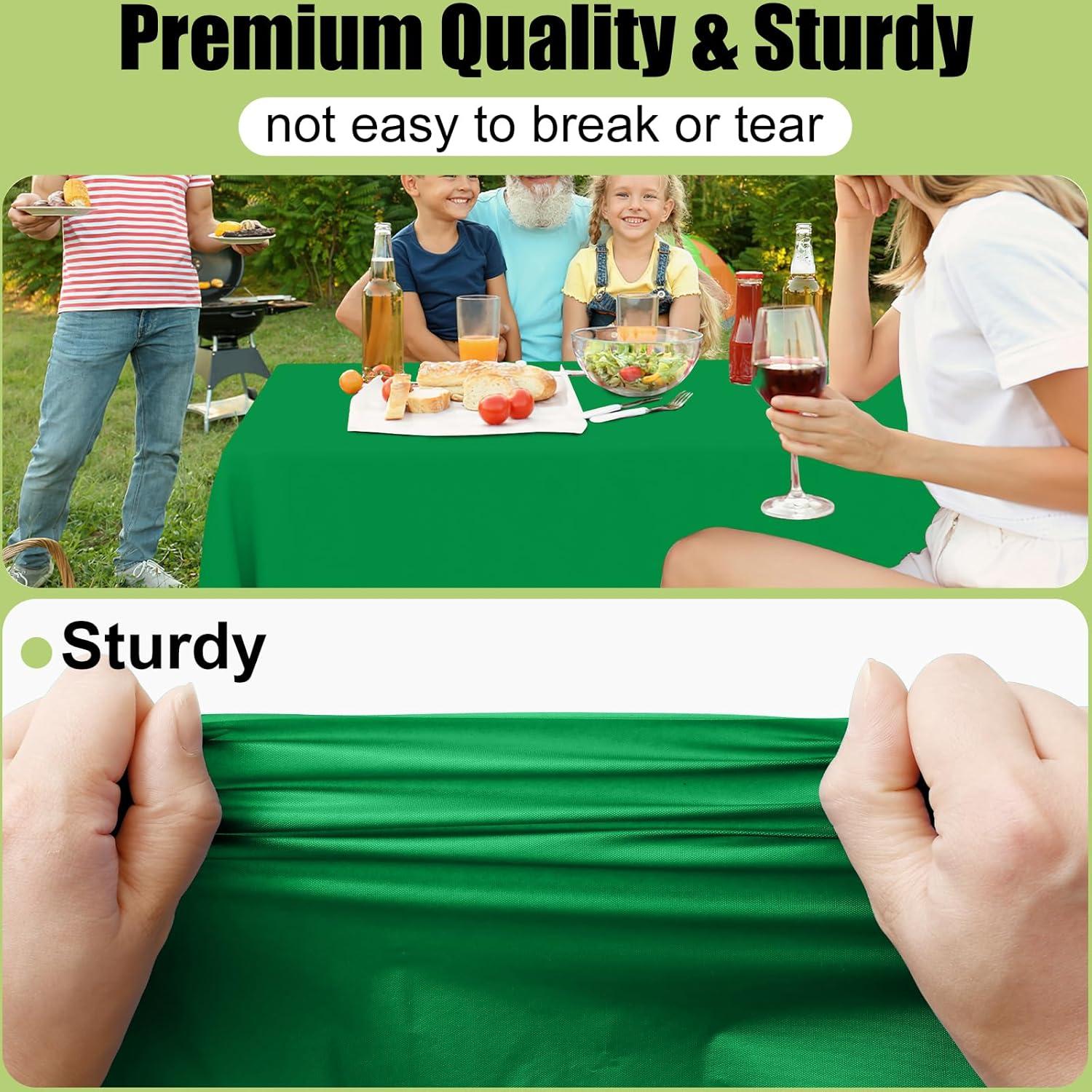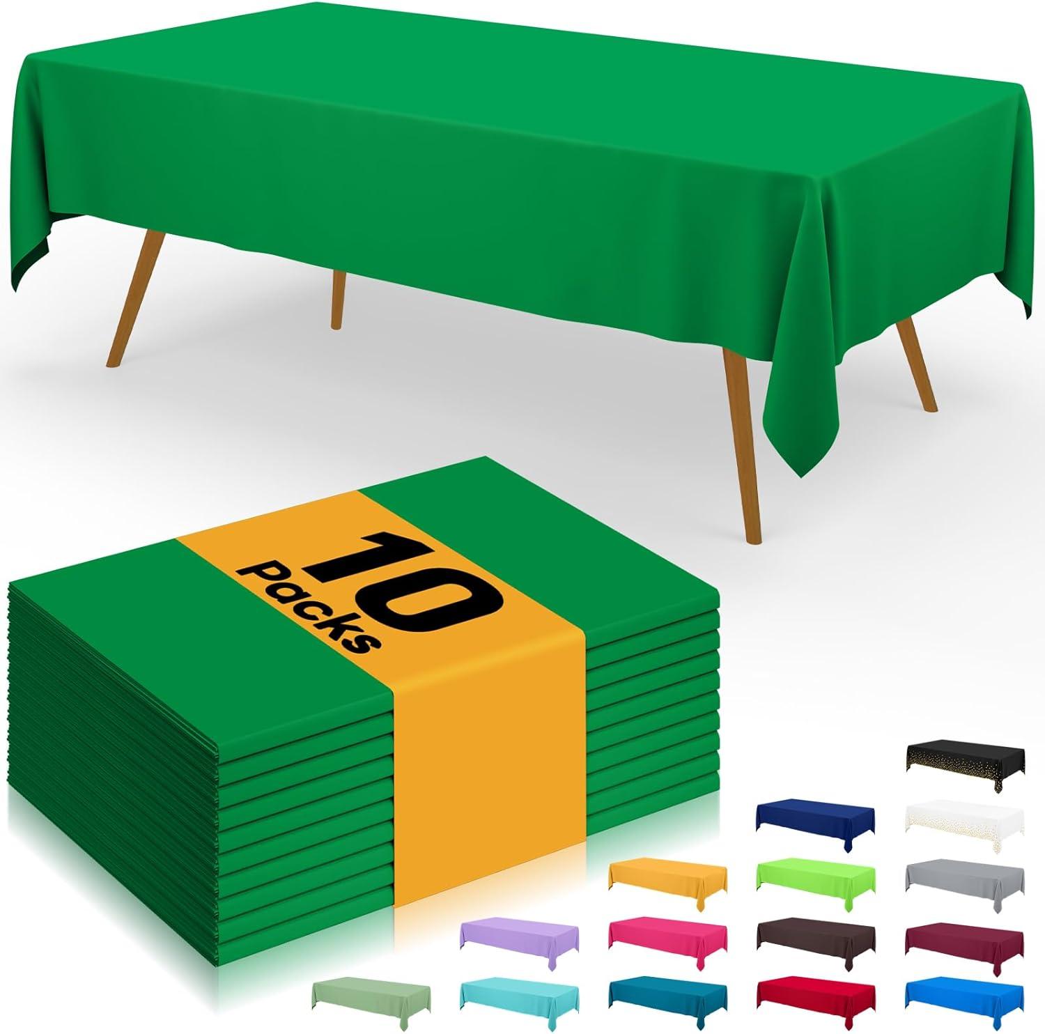 Smiry Disposable Table Cloth - 6 Pack, 54 x 108 Inch Waterproof Rectangle Tablecloths for Parties, Decorative Plastic Table Cover, Leakproof & Sturdy, White(Green)
