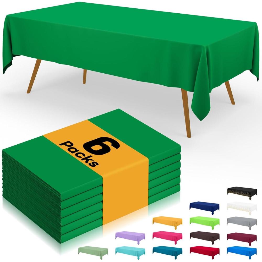 Smiry Disposable Table Cloth – 6 Pack, 54 x 108 Inch Waterproof Rectangle Tablecloths for Parties, Decorative Plastic Table Cover, Leakproof & Sturdy, White(Green)