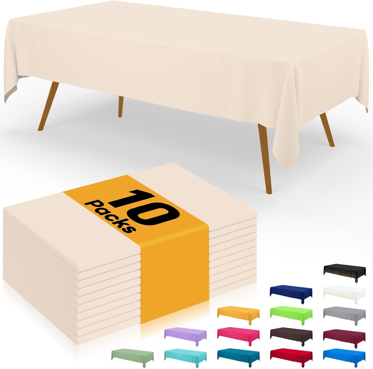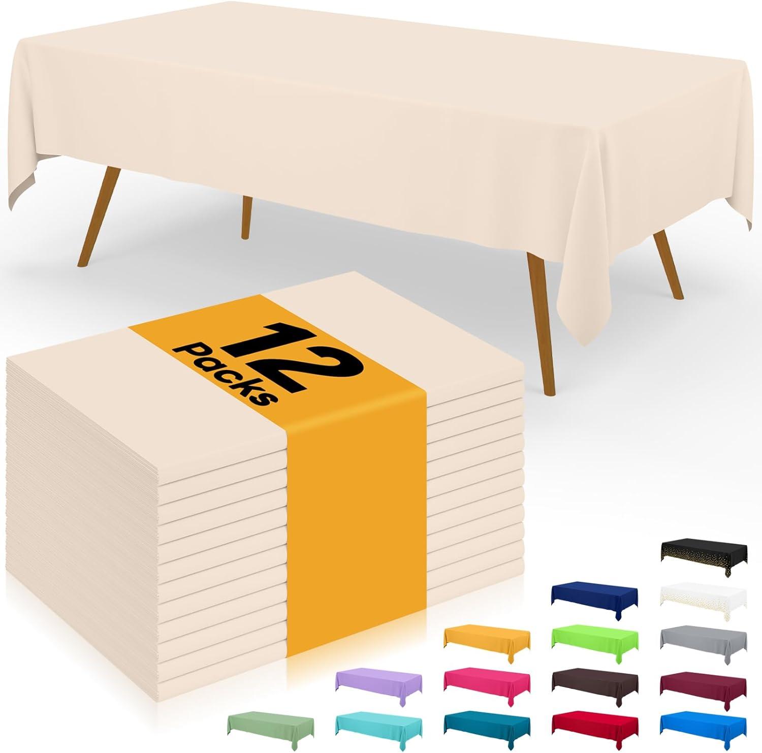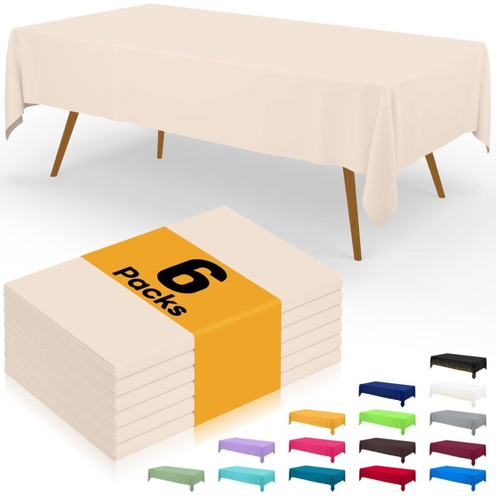 Smiry Disposable Table Cloth – 6 Pack, 54 x 108 Inch Waterproof Rectangle Tablecloths for Parties, Decorative Plastic Table Cover, Leakproof & Sturdy, White(Ivory)