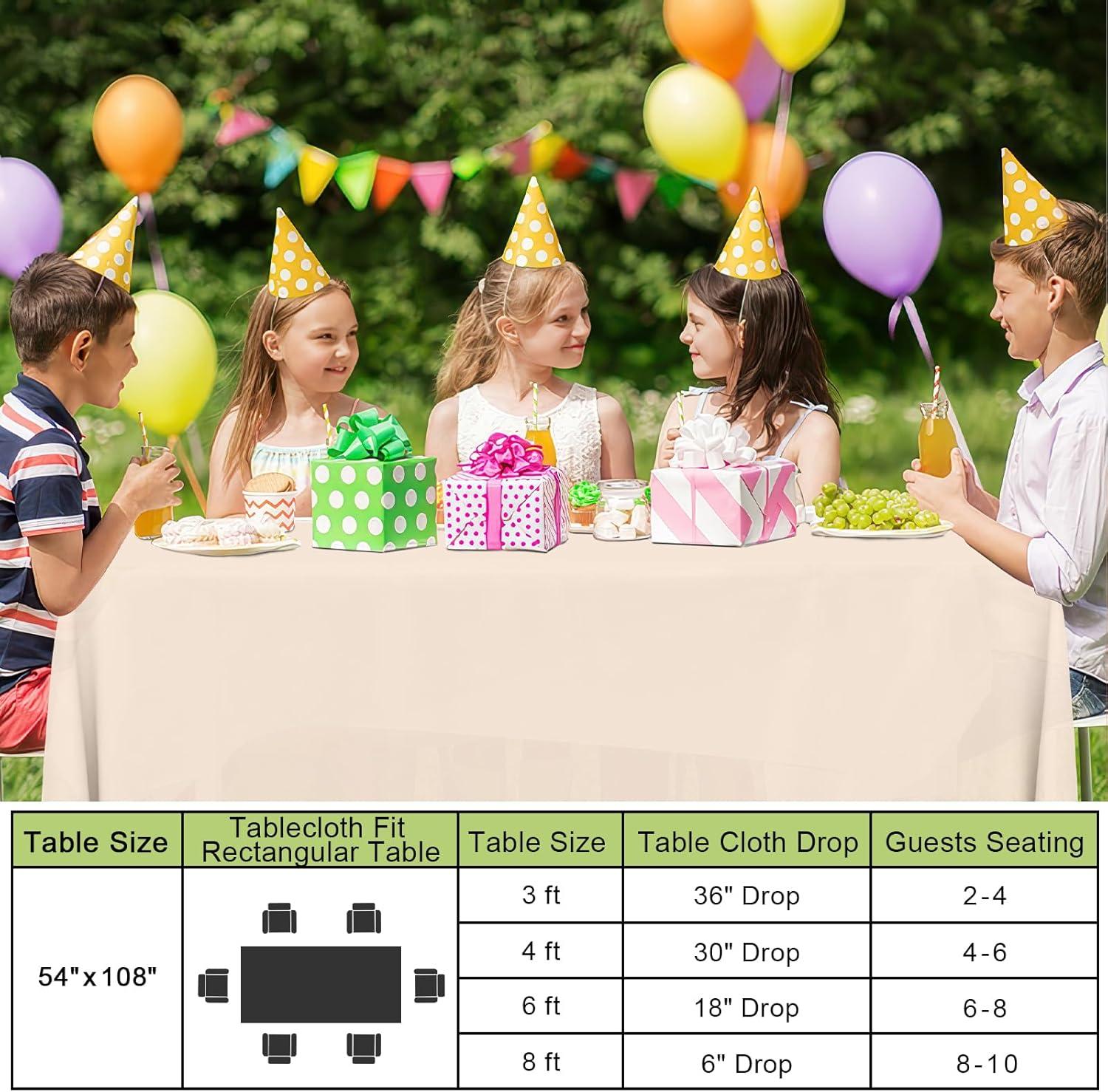 [Classic & Versatile] Our rectangular tablecloth is 108 inches/274cm long and 54 inches/137cm wide. Designed for dining, weddings, parties, banquets, events, picnics, campings, indoor and outdoor use.