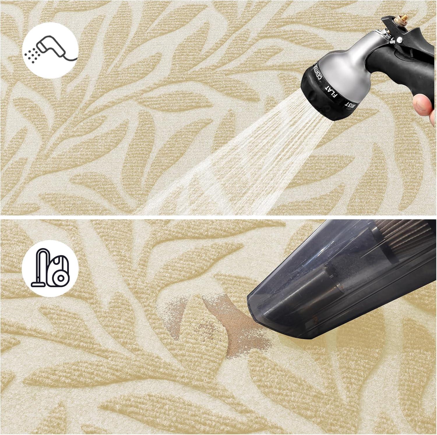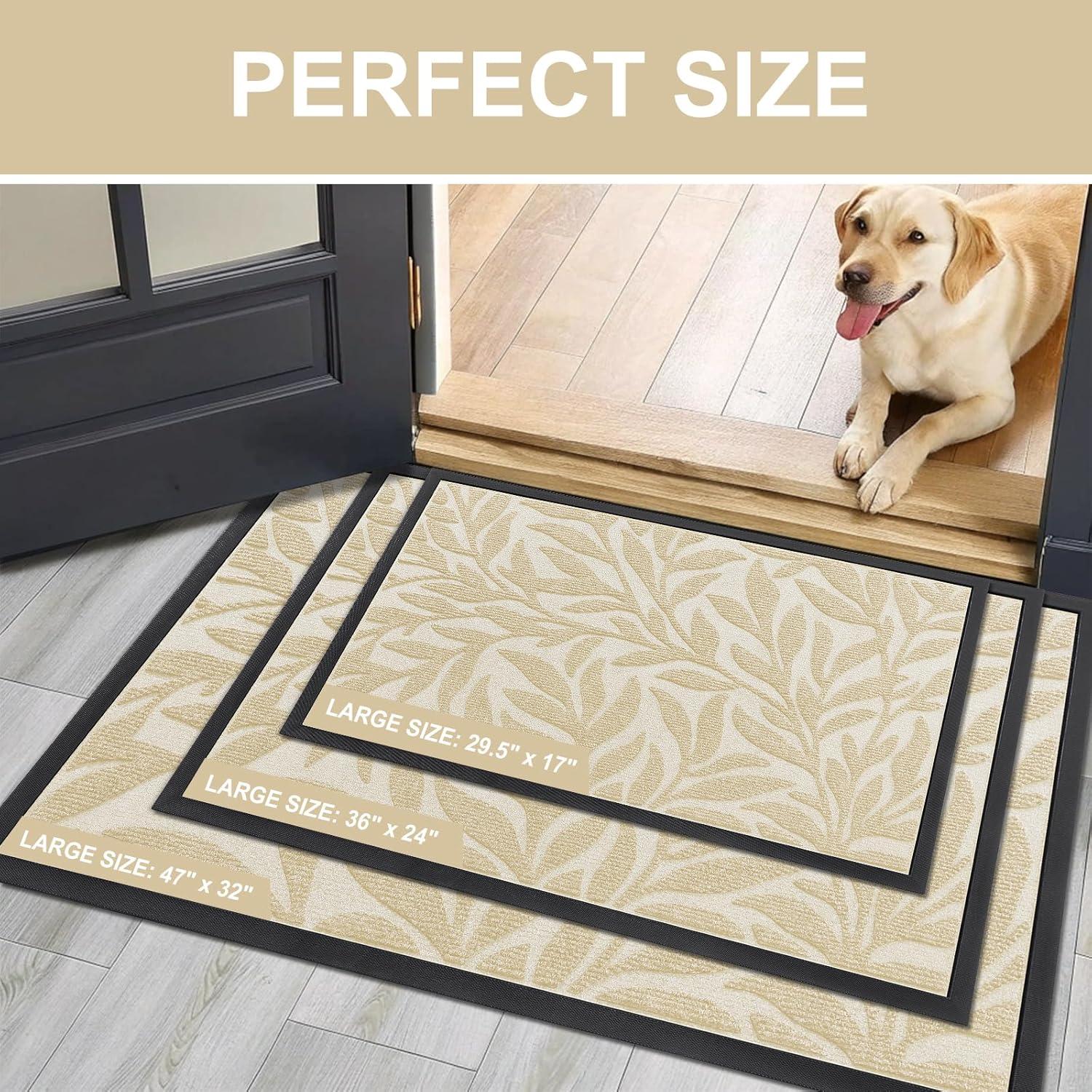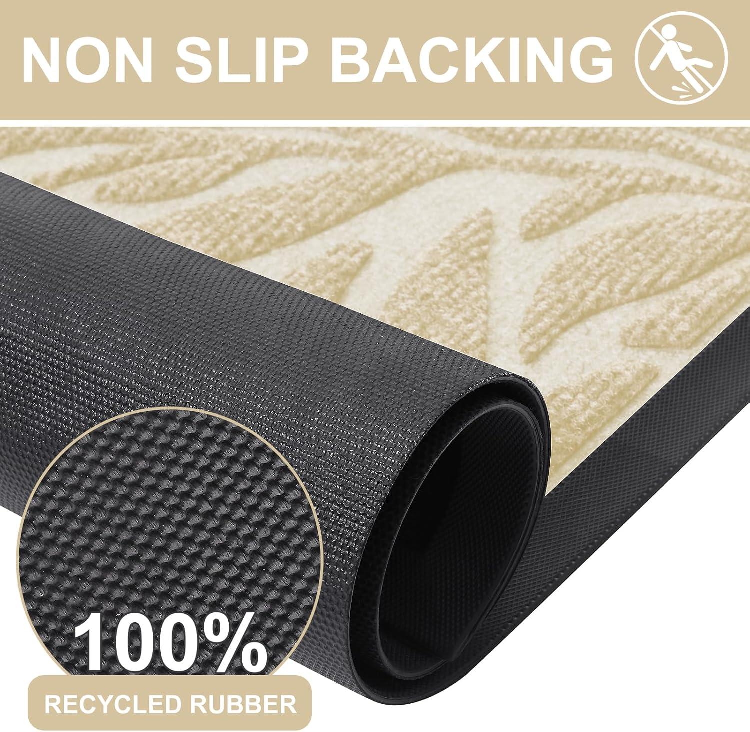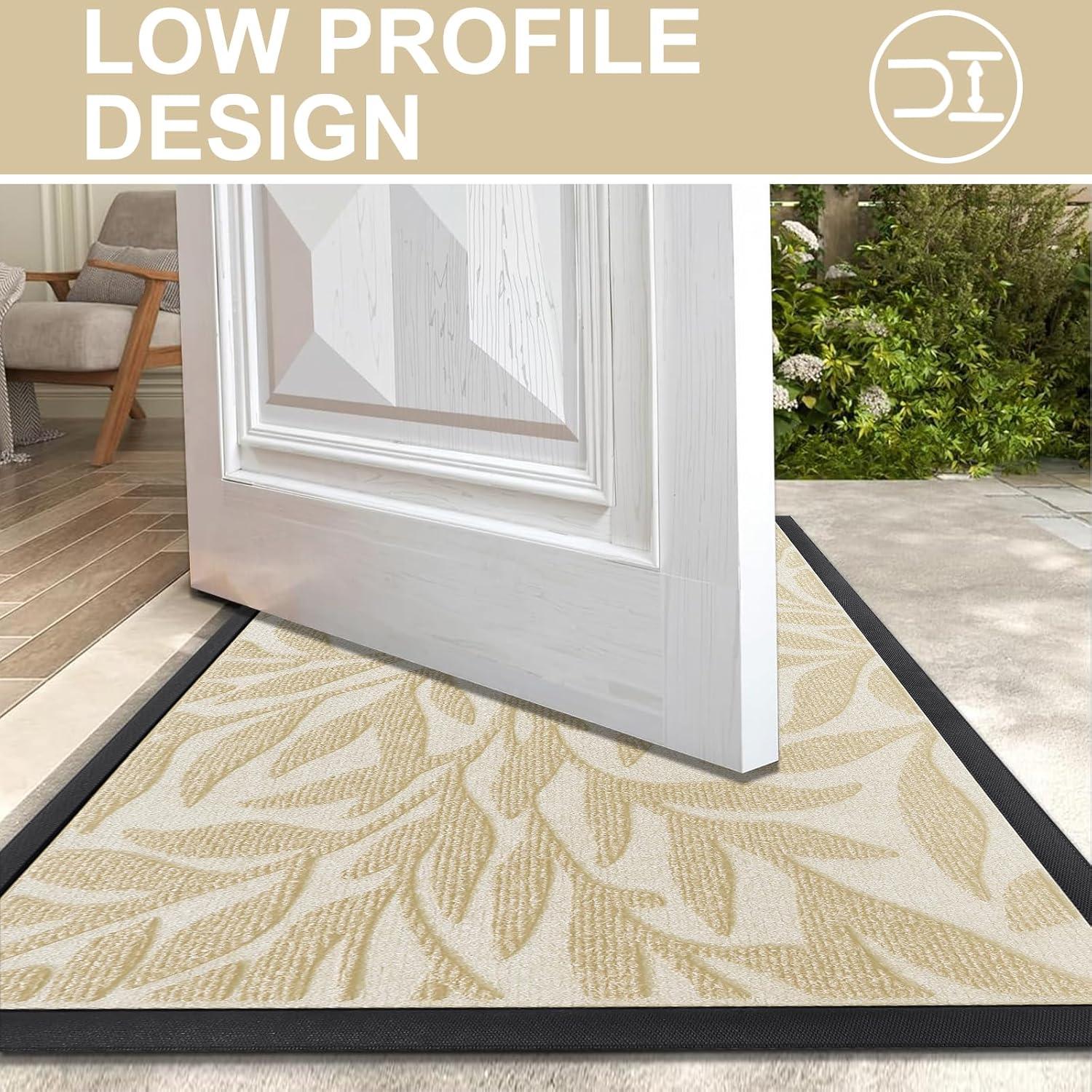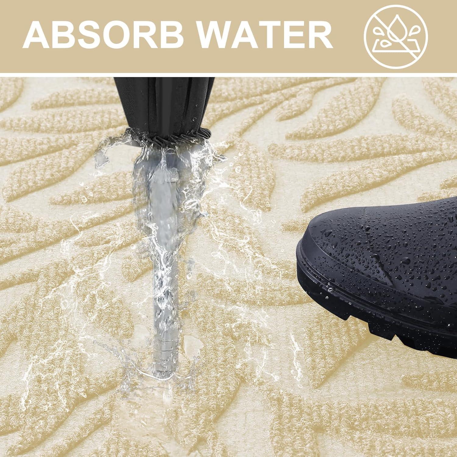 【Capture Dirt and Moisture】Smiry front door mat features foliage deep groove design that effectively traps dirt, dust, gravel, mud, sand, grass, and other messy debris. Its surface is crafted from beautifully woven polyester fabric that absorbs moisture, while the sturdy oblique rubber edge stops water accumulation during rainy or snowy conditions, ensuring your home remains dry and clean