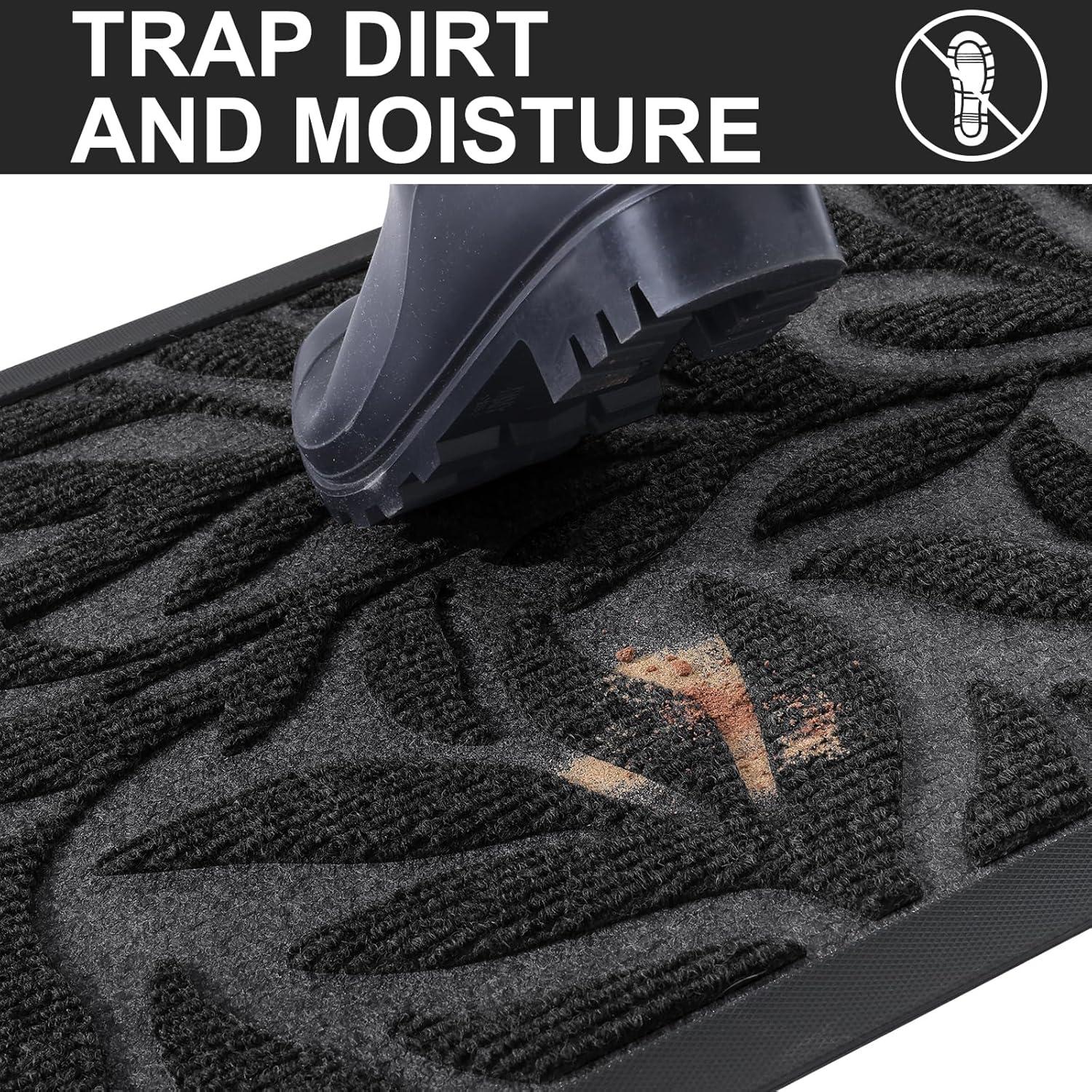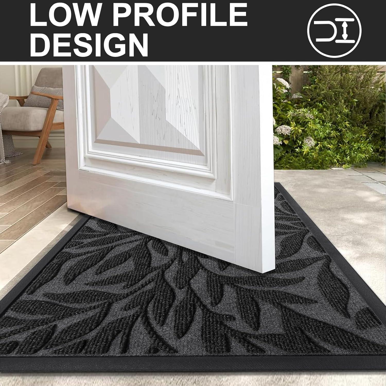 【Non-Slip & Low-Profile】The sturdy non-slip rubber liner has a strong grip, that not only stops water and mud from seeping into the floor and damaging the floor, but also keeps the door mat from sliding in use. The low profile makes our doormats suitable for most entrances. The door can be opened and closed smoothly without the risk of tripping