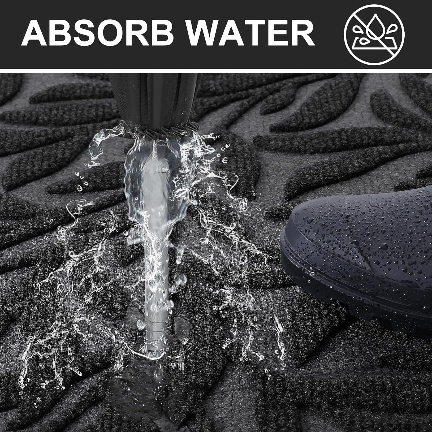 【Capture Dirt and Moisture】Smiry front door mat features foliage deep groove design that effectively traps dirt, dust, gravel, mud, sand, grass, and other messy debris. Its surface is crafted from beautifully woven polyester fabric that absorbs moisture, while the sturdy oblique rubber edge stops water accumulation during rainy or snowy conditions, ensuring your home remains dry and clean