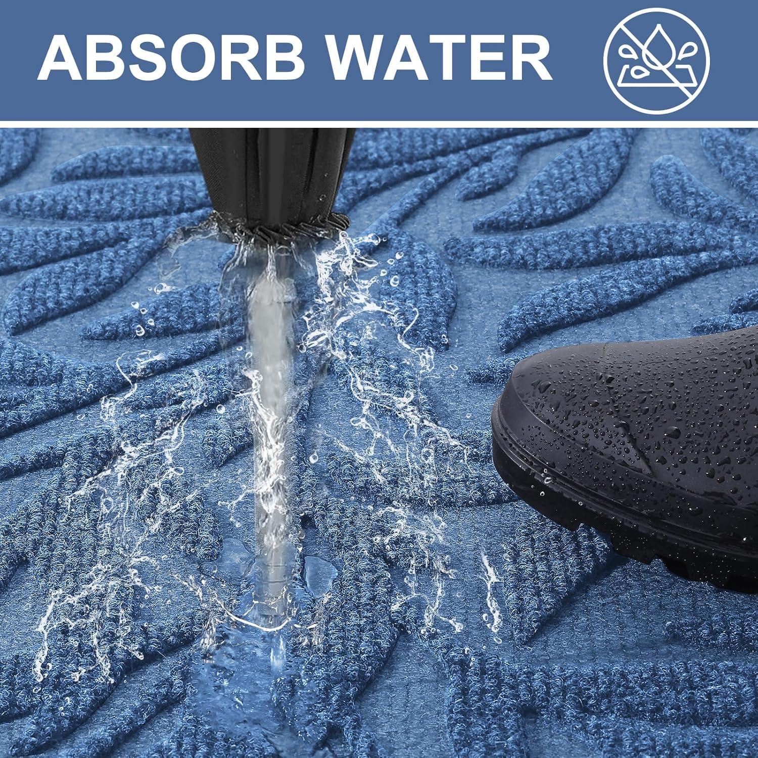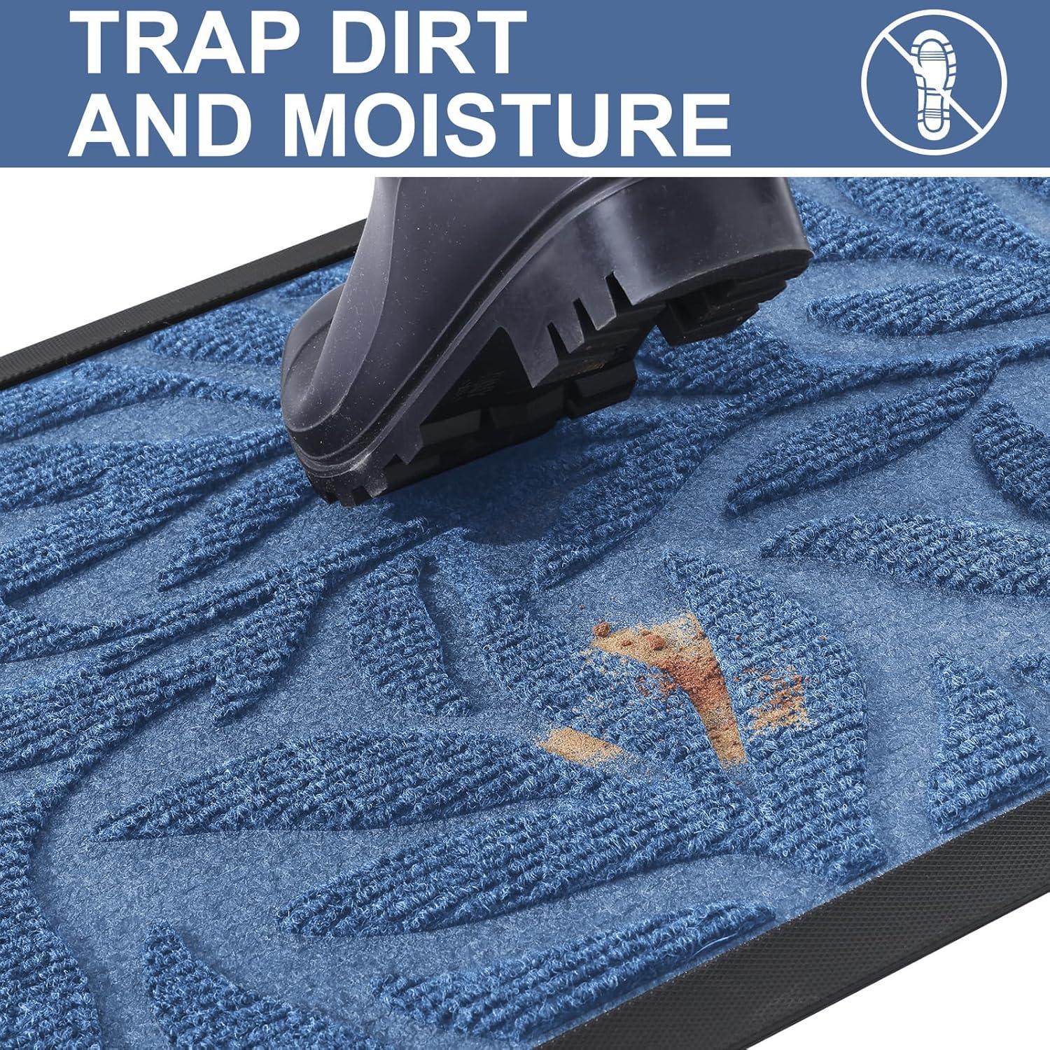 Smiry Front Door Mat Indoor Outdoor Entrance, Heavy Duty Natural Rubber, Trap Dirt and Moisture, Non-Slip Doormats, Low Profile, Easy Clean Patio Porch Entryway Mat, 29.5x17, Ocean Blue(Blue)