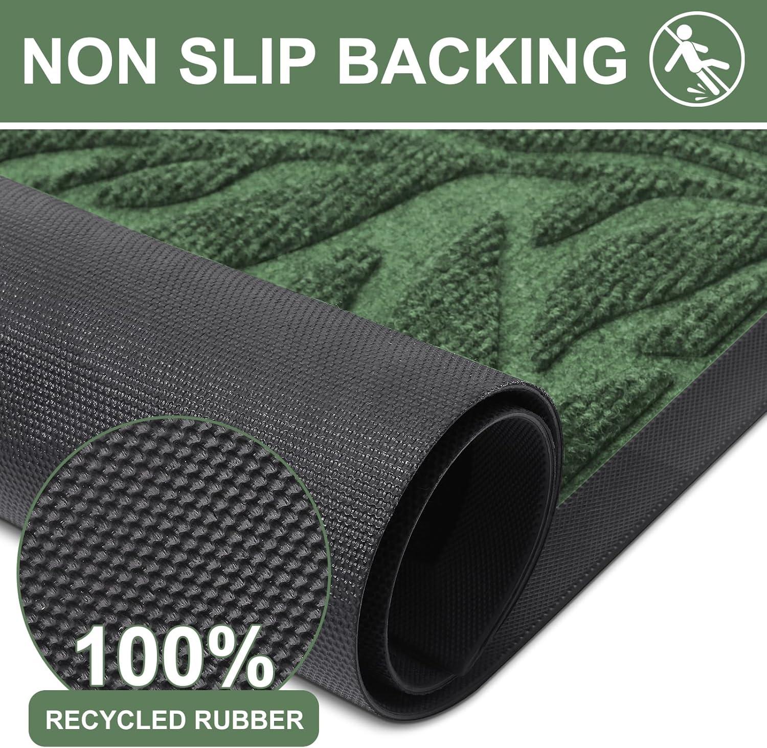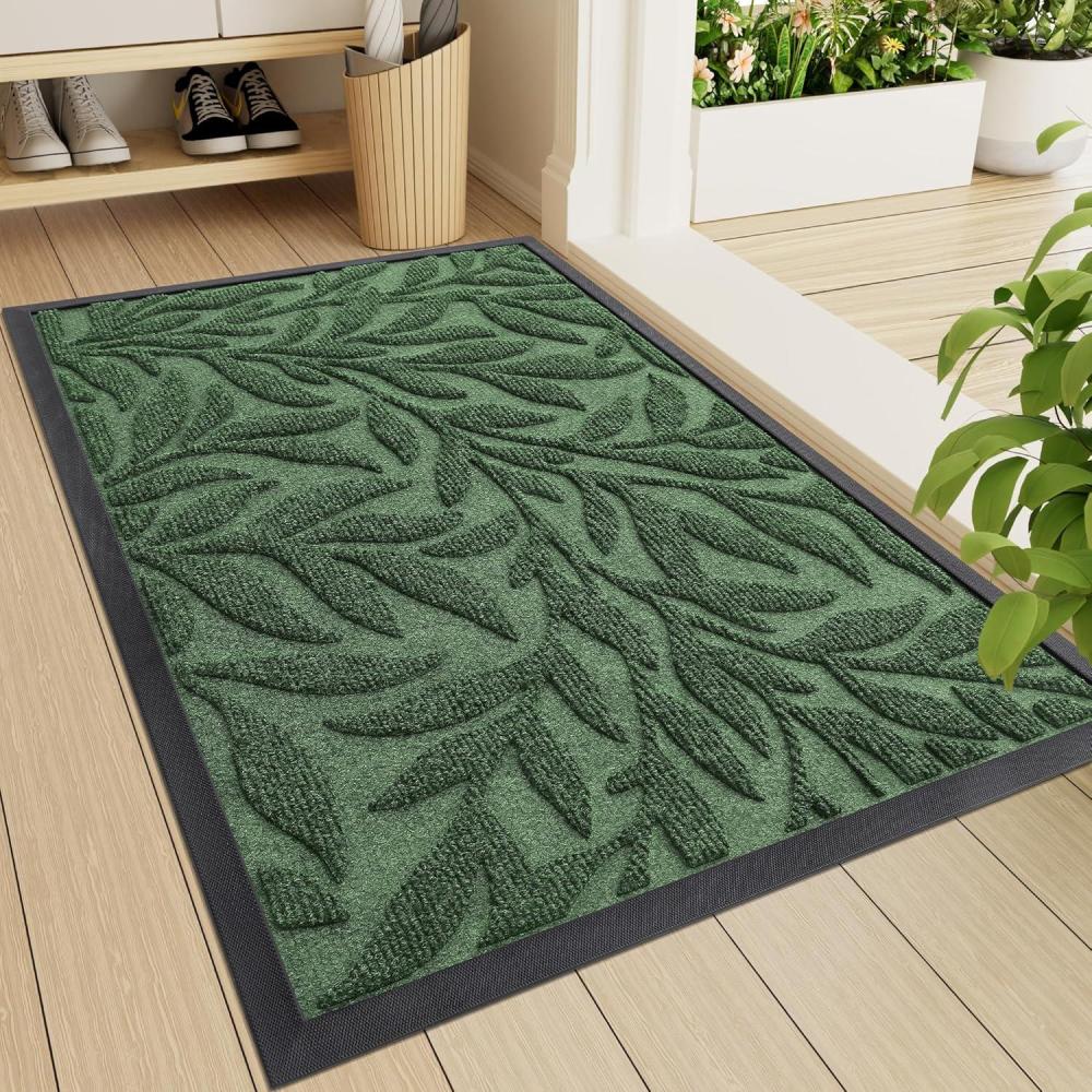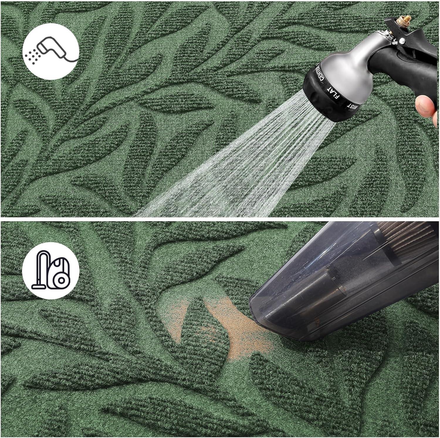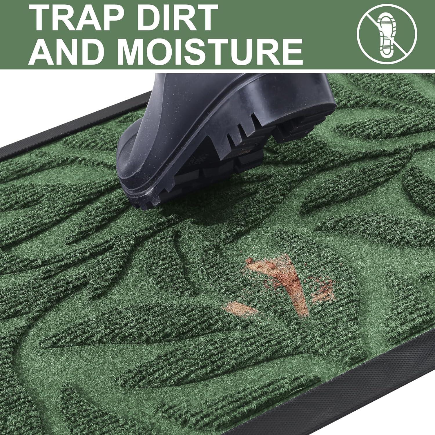 【Capture Dirt and Moisture】Smiry front door mat features foliage deep groove design that effectively traps dirt, dust, gravel, mud, sand, grass, and other messy debris. Its surface is crafted from beautifully woven polyester fabric that absorbs moisture, while the sturdy oblique rubber edge stops water accumulation during rainy or snowy conditions, ensuring your home remains dry and clean