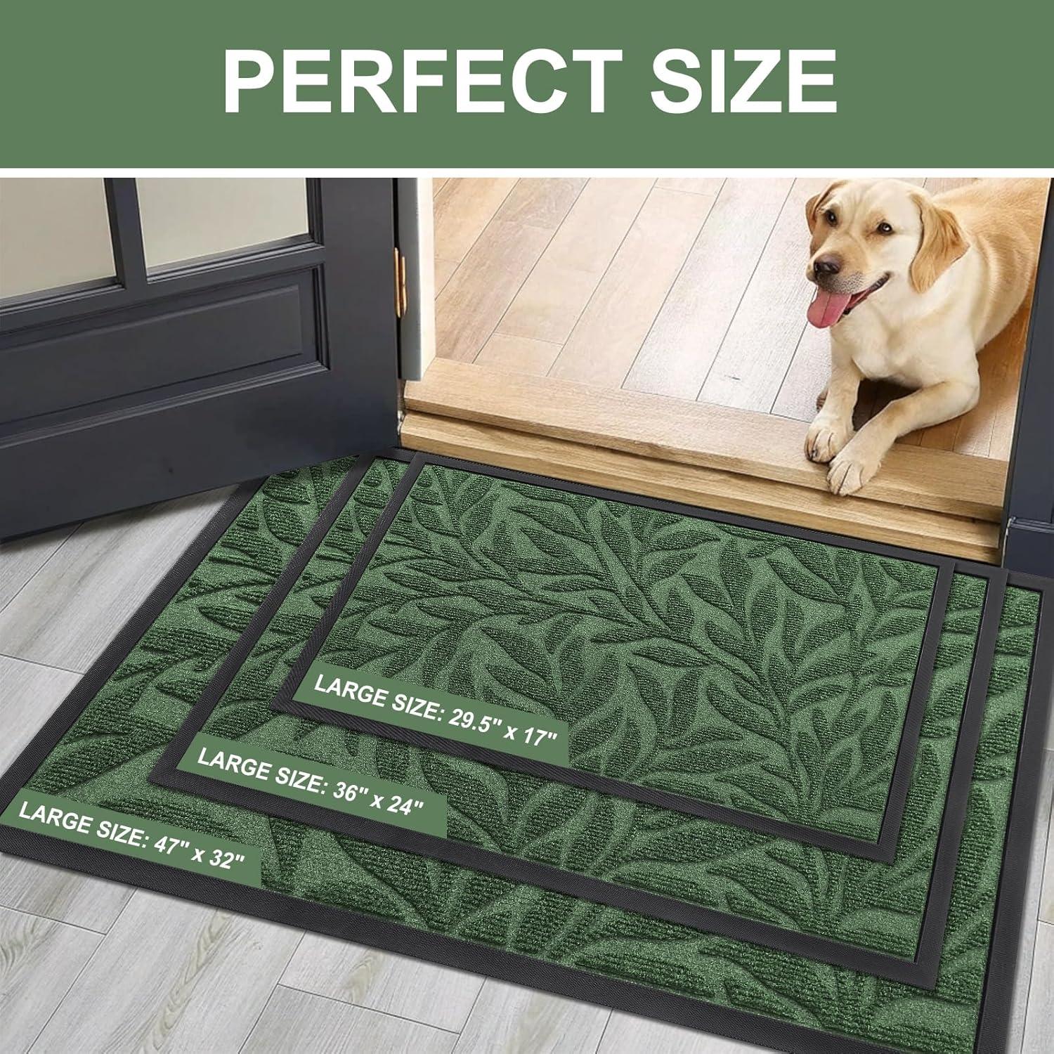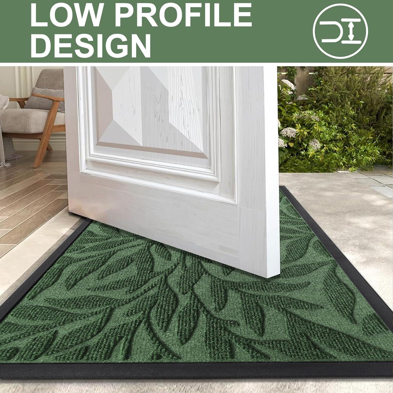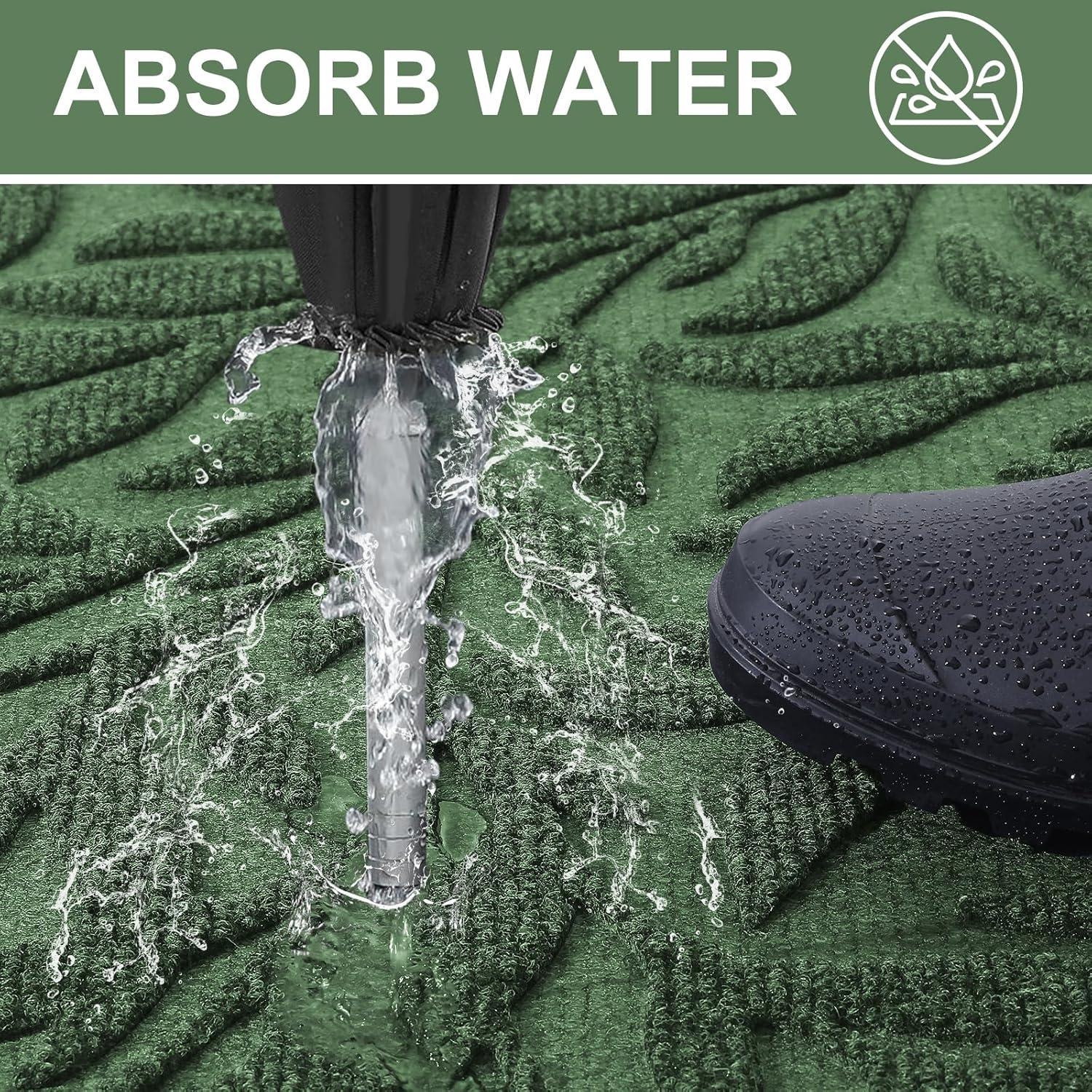 【Capture Dirt and Moisture】Smiry front door mat features foliage deep groove design that effectively traps dirt, dust, gravel, mud, sand, grass, and other messy debris. Its surface is crafted from beautifully woven polyester fabric that absorbs moisture, while the sturdy oblique rubber edge stops water accumulation during rainy or snowy conditions, ensuring your home remains dry and clean