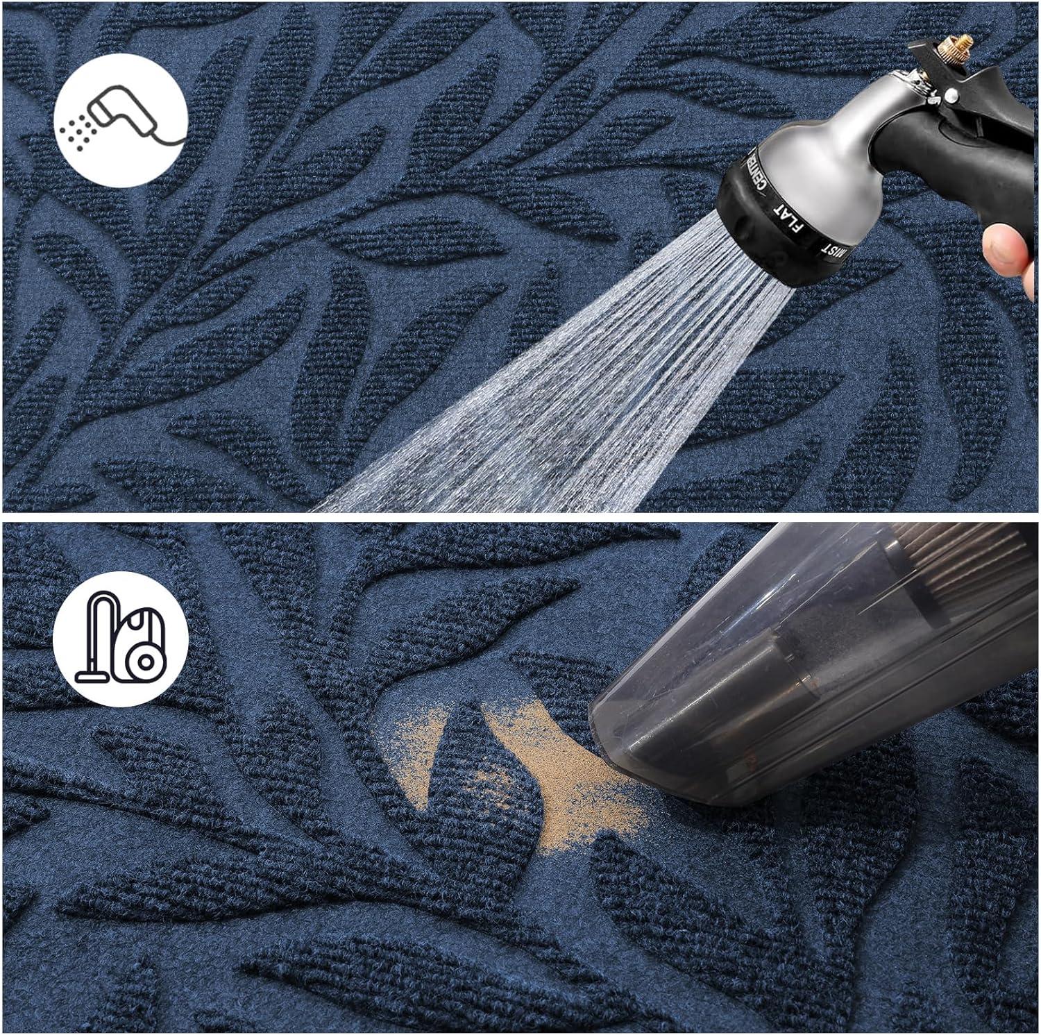 【Capture Dirt and Moisture】Smiry front door mat features foliage deep groove design that effectively traps dirt, dust, gravel, mud, sand, grass, and other messy debris. Its surface is crafted from beautifully woven polyester fabric that absorbs moisture, while the sturdy oblique rubber edge stops water accumulation during rainy or snowy conditions, ensuring your home remains dry and clean