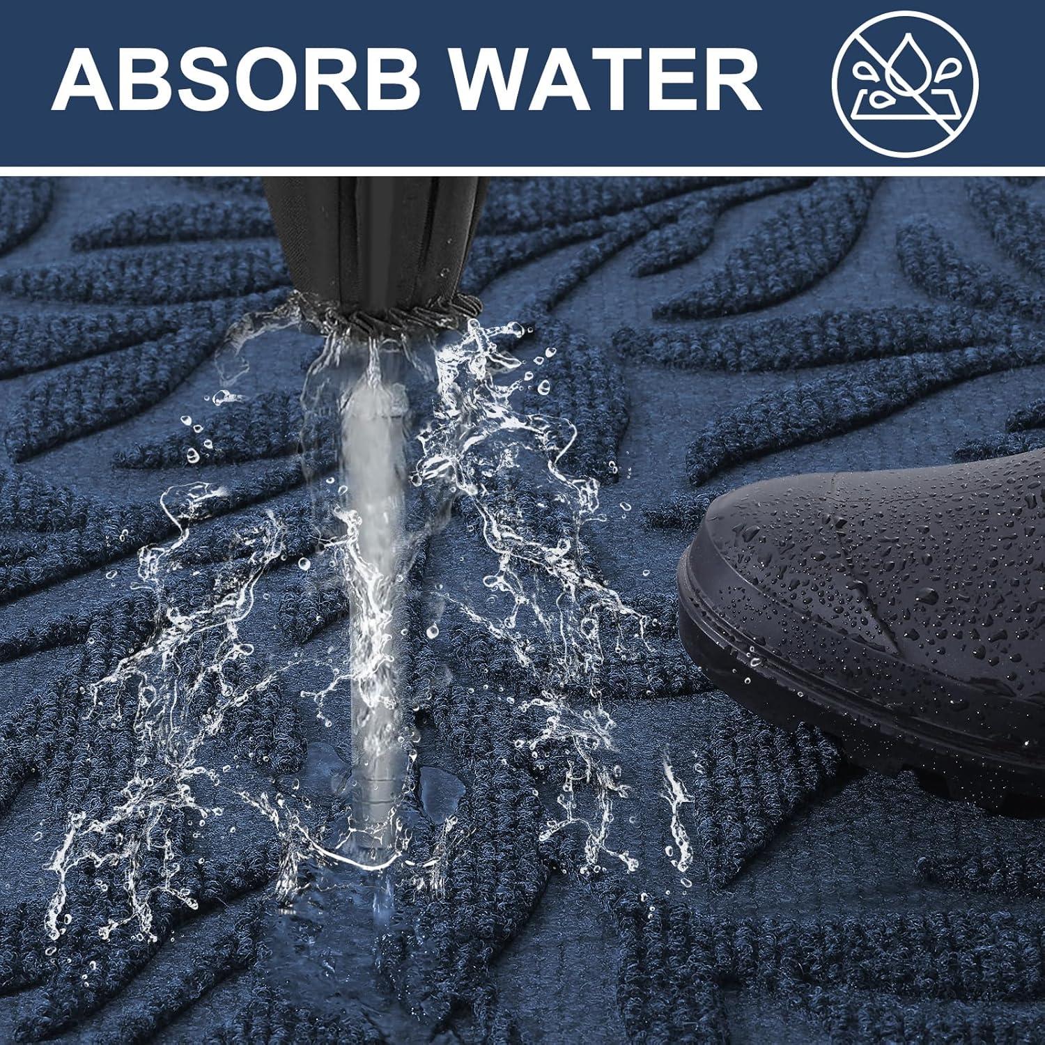 Smiry Front Door Mat Indoor Outdoor Entrance, Heavy Duty Natural Rubber, Trap Dirt and Moisture, Non-Slip Doormats, Low Profile, Easy Clean Patio Porch Entryway Mat, 29.5×17, Ocean Blue(Navy)