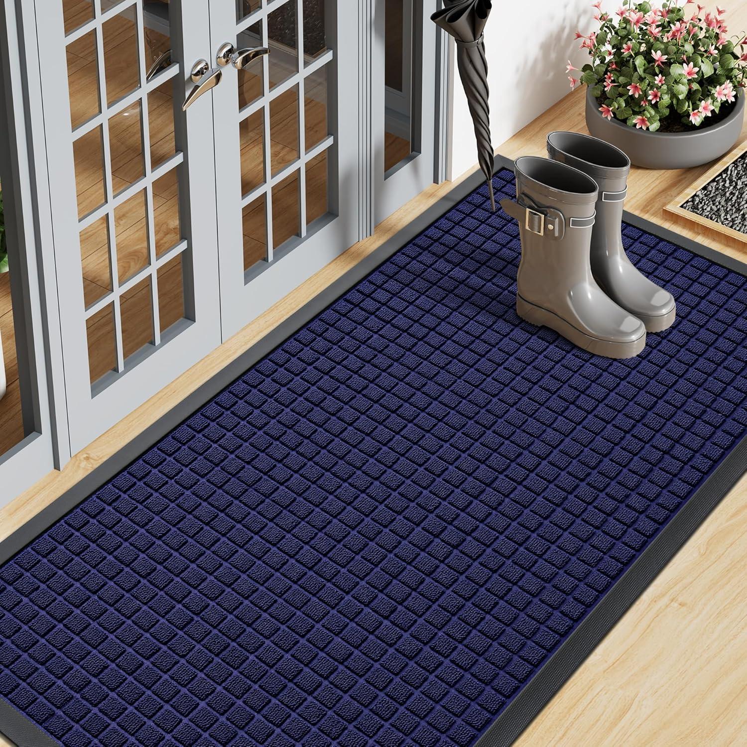 Smiry Front Door Mat Outside Entrance, Heavy Duty Natural Rubber Doormat, Non Slip, Trap Dirt and Moisture, Easy Clean, Low Profile Welcome Floor Mats for Indoor Outdoor Entry, 29.5x17 Inch, Black(Navy Blue)