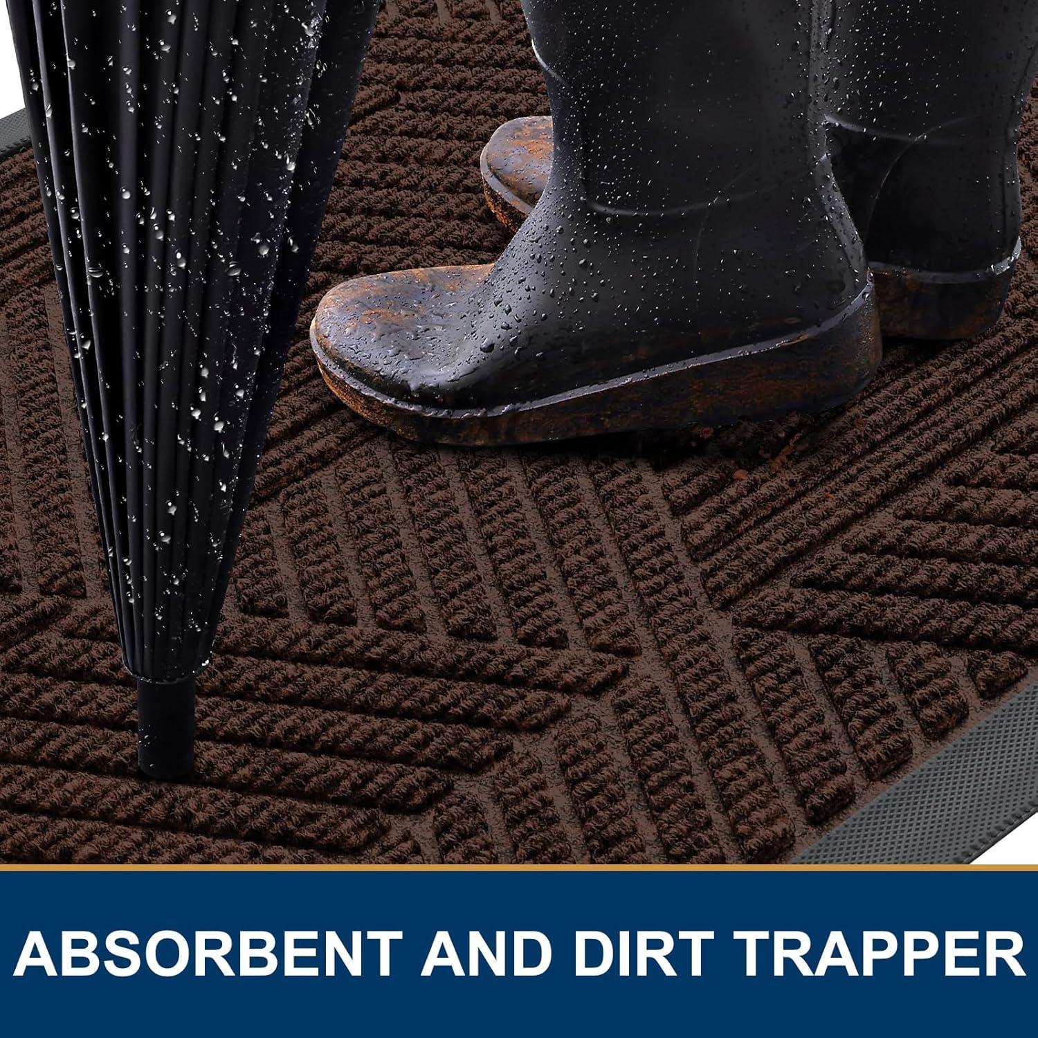 【Moisture & Dirt Absorbent】: The surface of the Smiry door mat is made of woven polyester fabric. The deep grooves can effectively trap the dust, gravel, mud, sand and other clutter. The sturdy beveled rubber edge will not accumulate water. Even rainy, snowy or muddy weather will keep your home dry and clean.