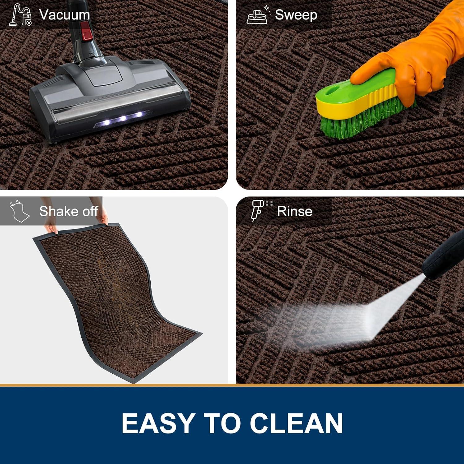【Easy to Clean】: Smiry front door mat can be swept with a broom, lifted by hand, or vacuumed. For a deeper cleaning, use a washing machine or hose to rinse, then hang it in a ventilated place to air-dry or tumble-dry. Do not use bleach or fabric softeners.