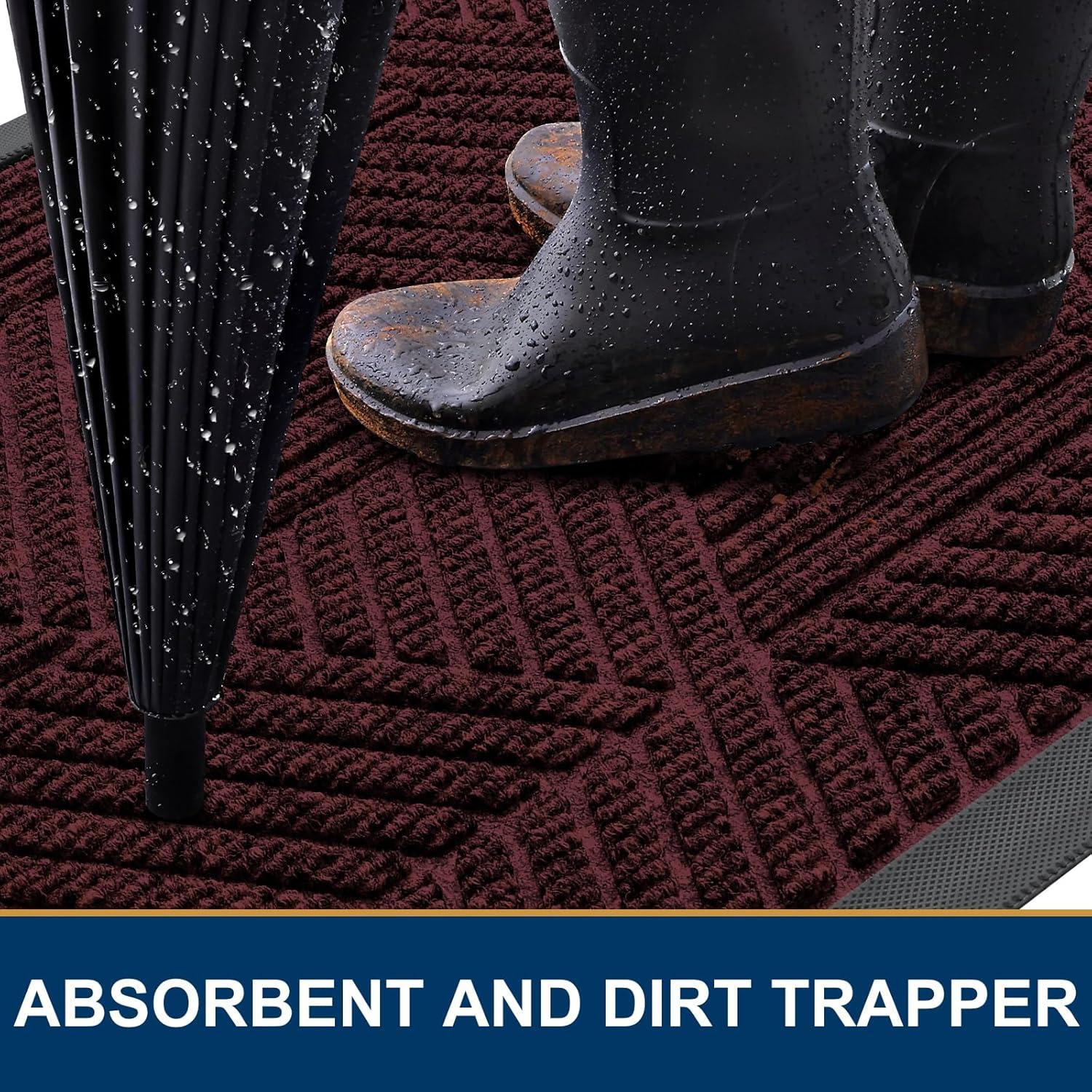 【Moisture & Dirt Absorbent】: The surface of the Smiry door mat is made of woven polyester fabric. The deep grooves can effectively trap the dust, gravel, mud, sand and other clutter. The sturdy beveled rubber edge will not accumulate water. Even rainy, snowy or muddy weather will keep your home dry and clean.