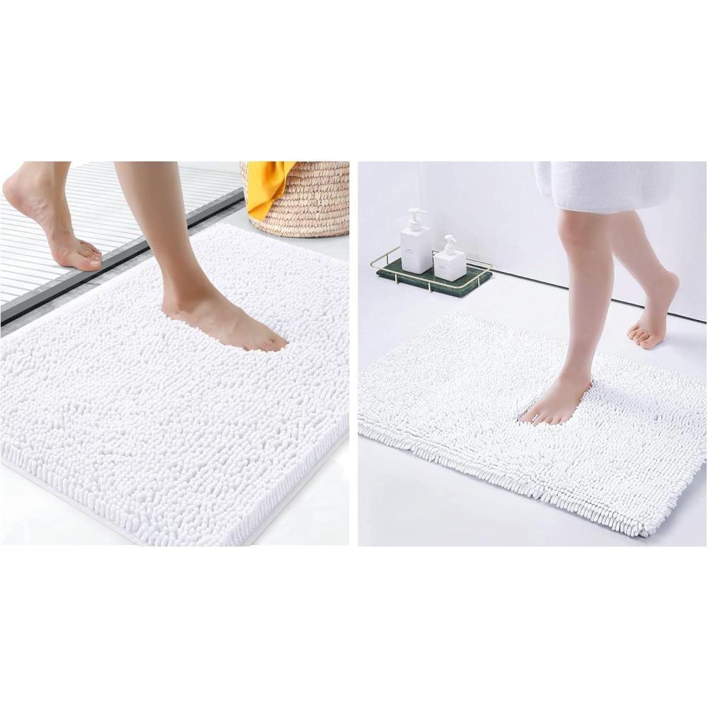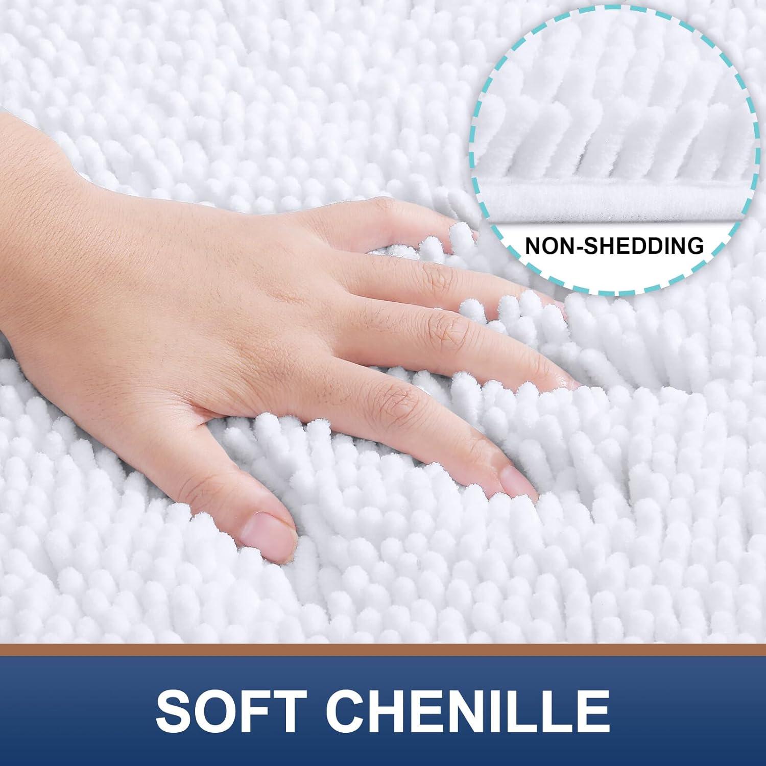 Smiry Luxury Chenille Bath Rug Set, 2 Piece Extra Soft and Absorbent Shaggy Bathroom Mat Rugs, Machine Washable, Non-Slip Plush Carpet Runner for Tub, Shower, and Bath Room(24''x16''+30"x20",White)
