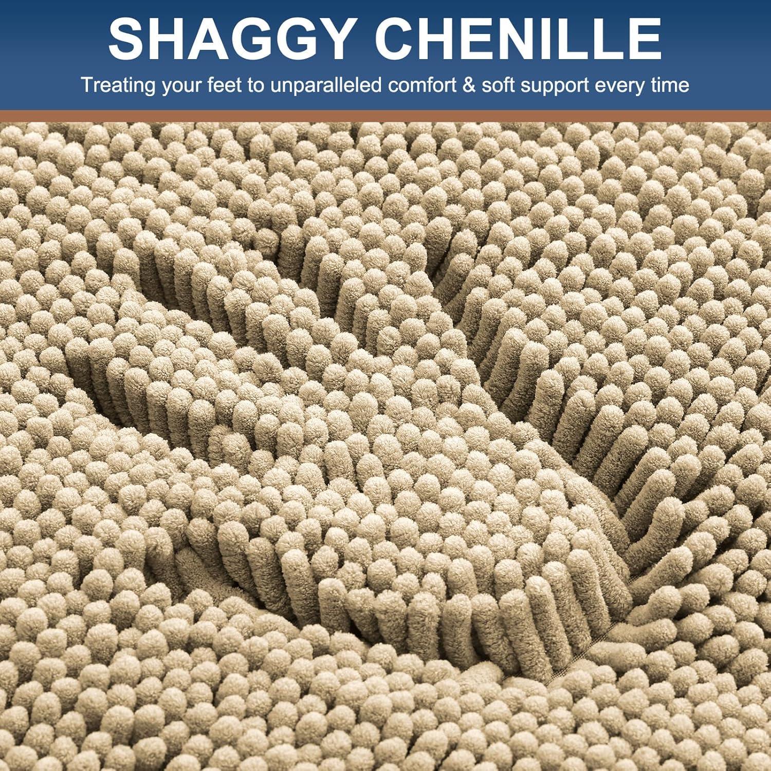 Smiry Luxury Chenille Bathroom Rugs 30x20, Extra Soft and Absorbent Shaggy Bath Mat, Machine Washable, Non-Slip Plush Carpet Runner for Tub, Shower, and Floor, Home Decor Accessories, Beige