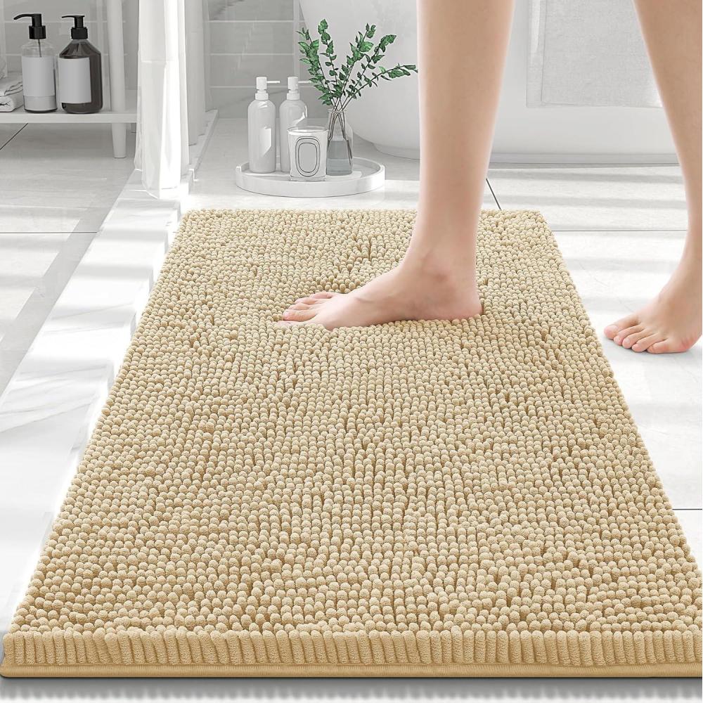 Smiry Luxury Chenille Bathroom Rugs 30×20, Extra Soft and Absorbent Shaggy Bath Mat, Machine Washable, Non-Slip Plush Carpet Runner for Tub, Shower, and Floor, Home Decor Accessories, Beige