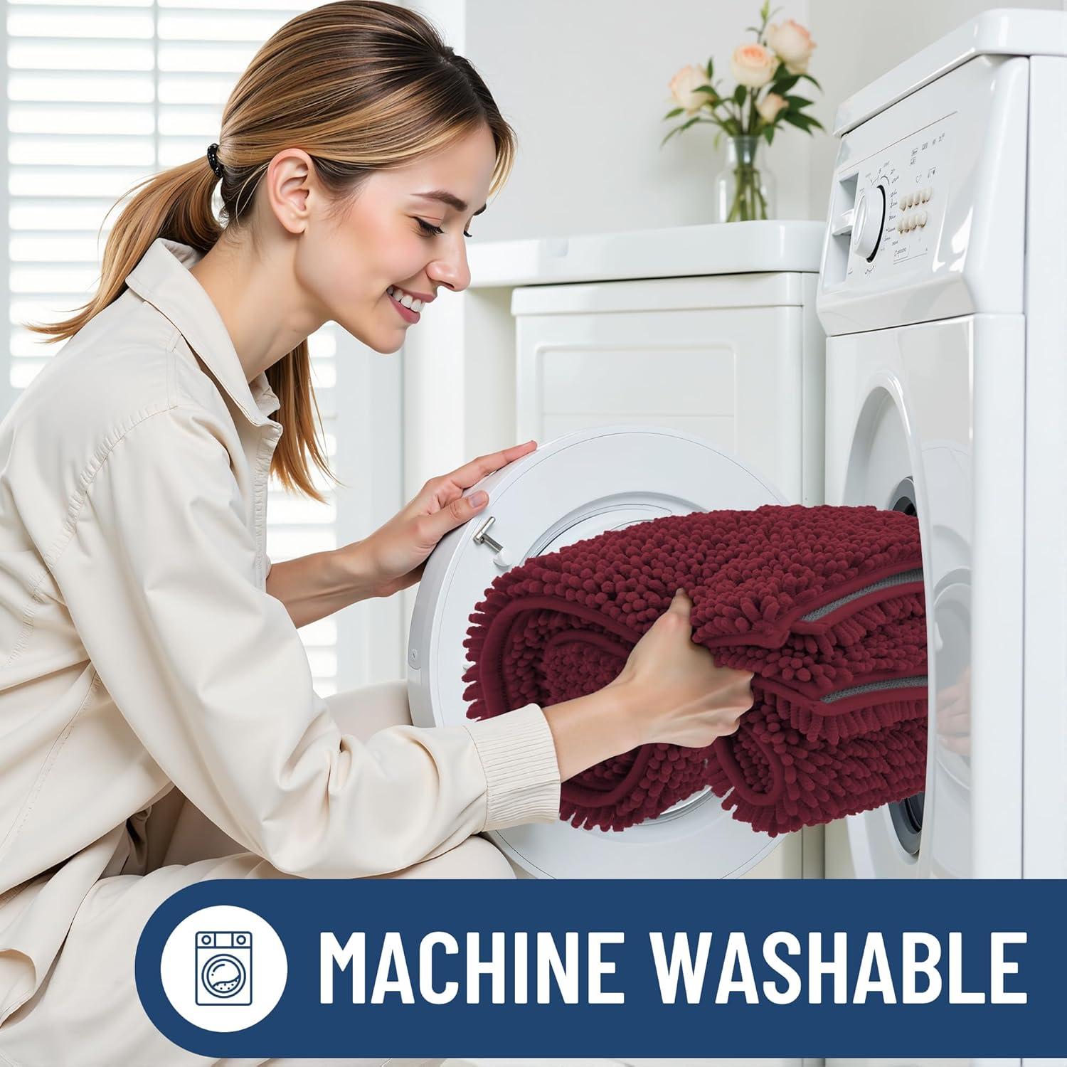 [Easy to Clean & Care] Smiry bathroom rugs are effortlessly maintainable. Toss them in your washing machine and tumble dry on low for a hassle-free cleaning experience. The extra-soft microfiber material remains smooth, even after multiple washes.