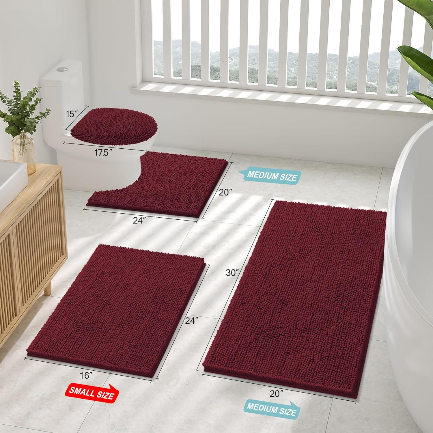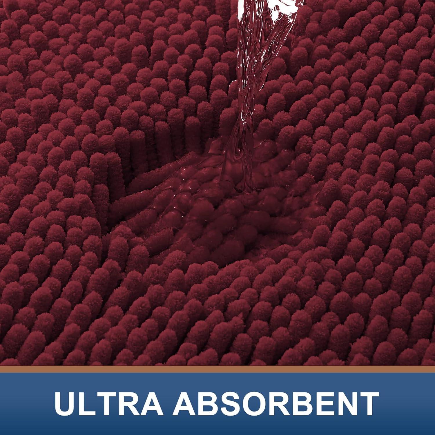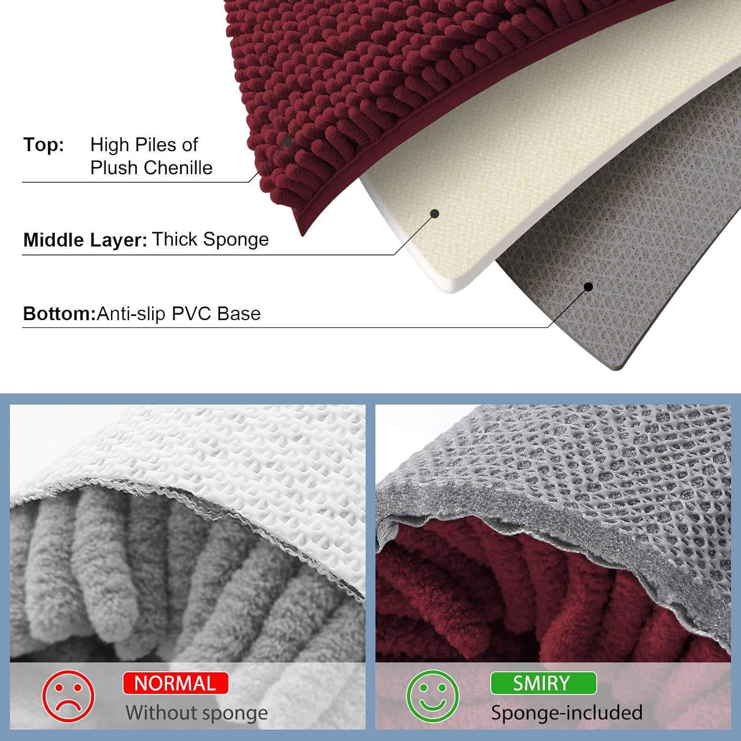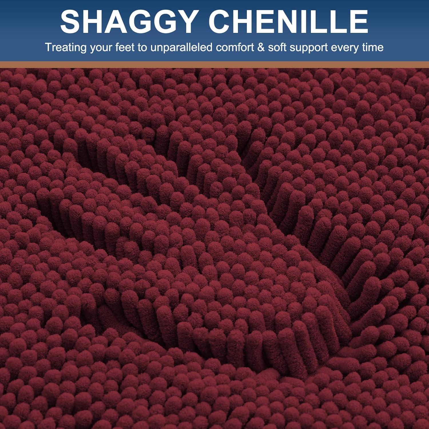 Smiry Luxury Chenille Toilet Rugs U-Shaped 24×20, Soft Absorbent Non-Slip Contour Bathroom Rugs for Toilet, Machine Washable Contoured Bath Mats, Burgundy