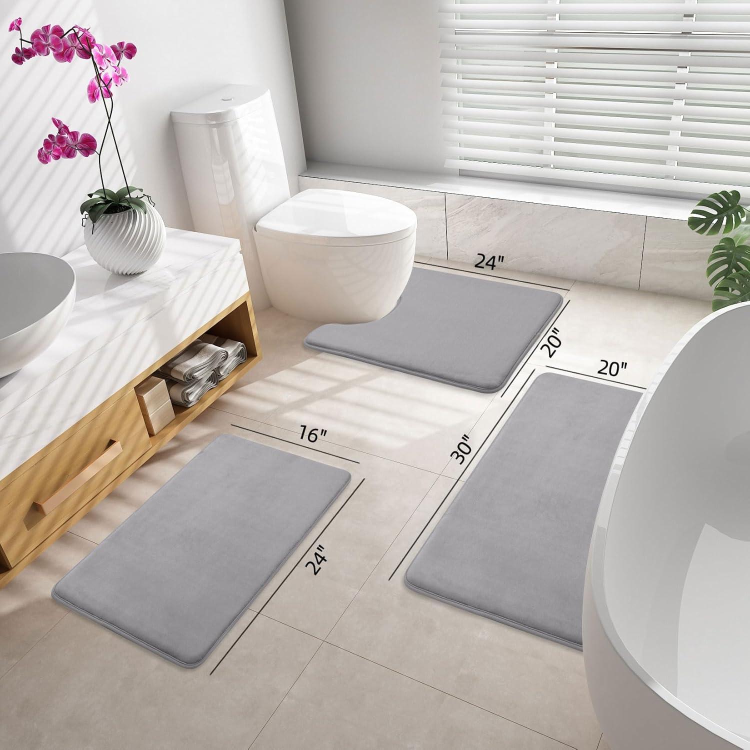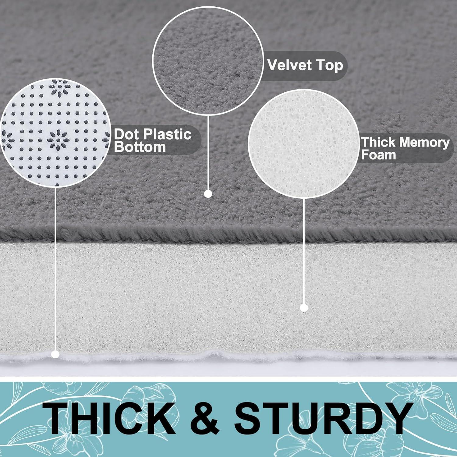 SUPER SOFT & COMFORTABLE – Smiry bath mats are filled with high-density polyurethane memory foam that soothes tired feet and shields toes from the cold floor. The fannel outer material, ultra-soft and cozy, skin-friendly, relieve pressure and fatigue on your feet. Let you enjoy the comfort of standing on the clouds!