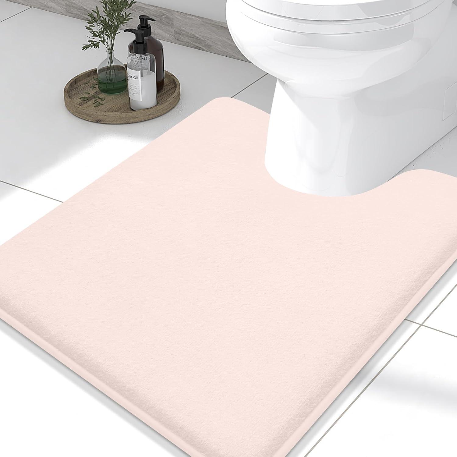 imageSmiry Memory Foam Toilet Rugs UShaped 24x20 Extra Soft Absorbent NonSlip Contour Bathroom Rugs Machine Washable Bath Mats for Toilet BlackDeep Pink