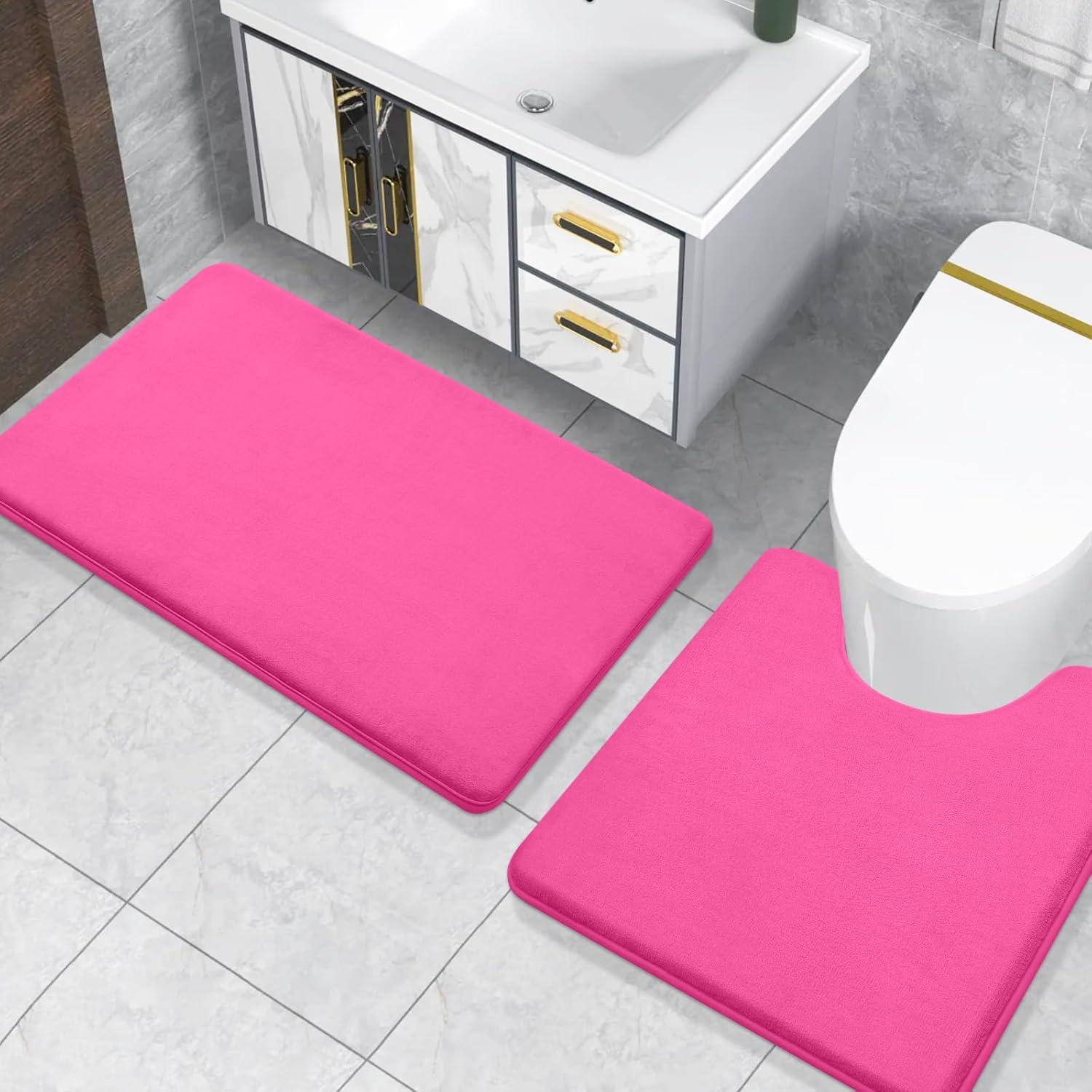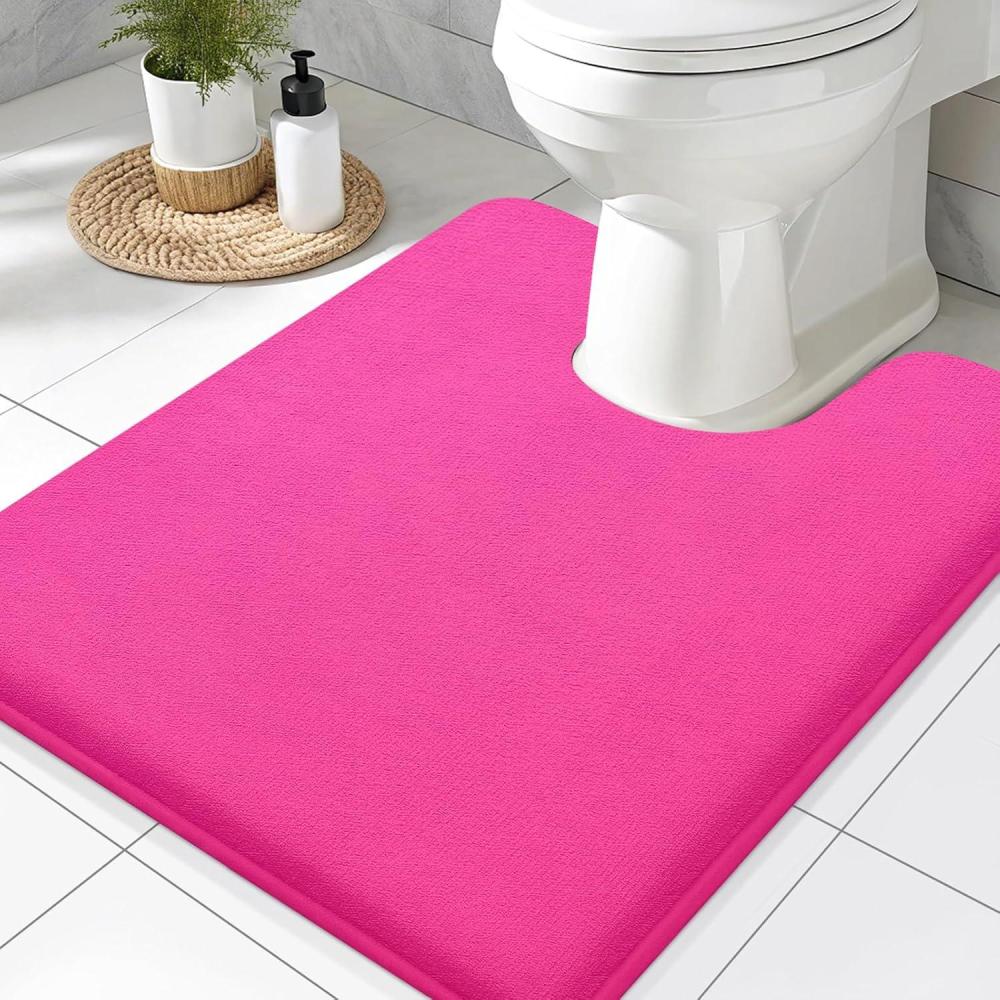 Smiry Memory Foam Toilet Rugs U-Shaped 24x20, Extra Soft Absorbent Non-Slip Contour Bathroom Rugs, Machine Washable Bath Mats for Toilet, Black(Deep Pink)