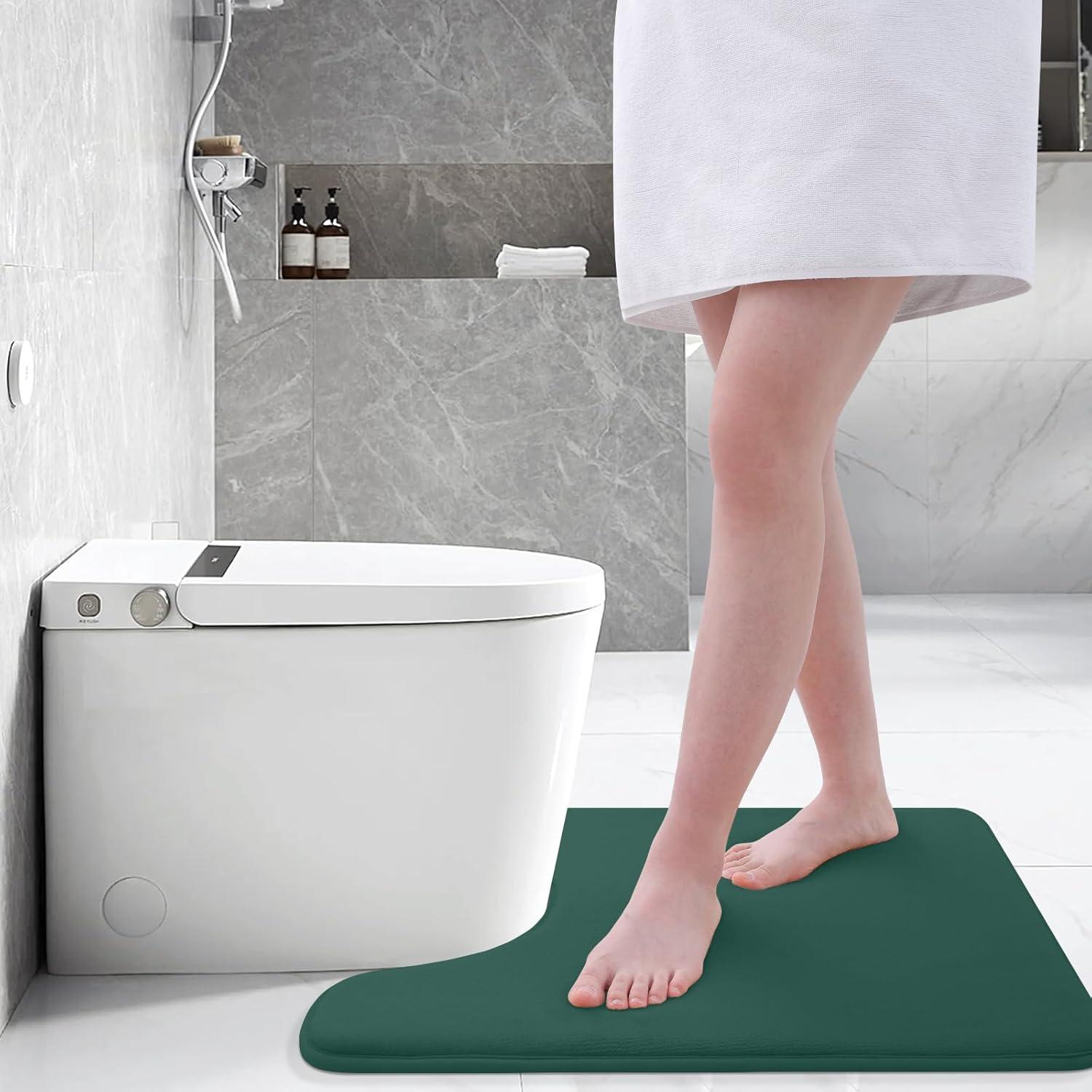 Smiry Memory Foam Toilet Rugs U-Shaped 24x20, Extra Soft Absorbent Non-Slip Contour Bathroom Rugs, Machine Washable Bath Mats for Toilet, Black(Green)