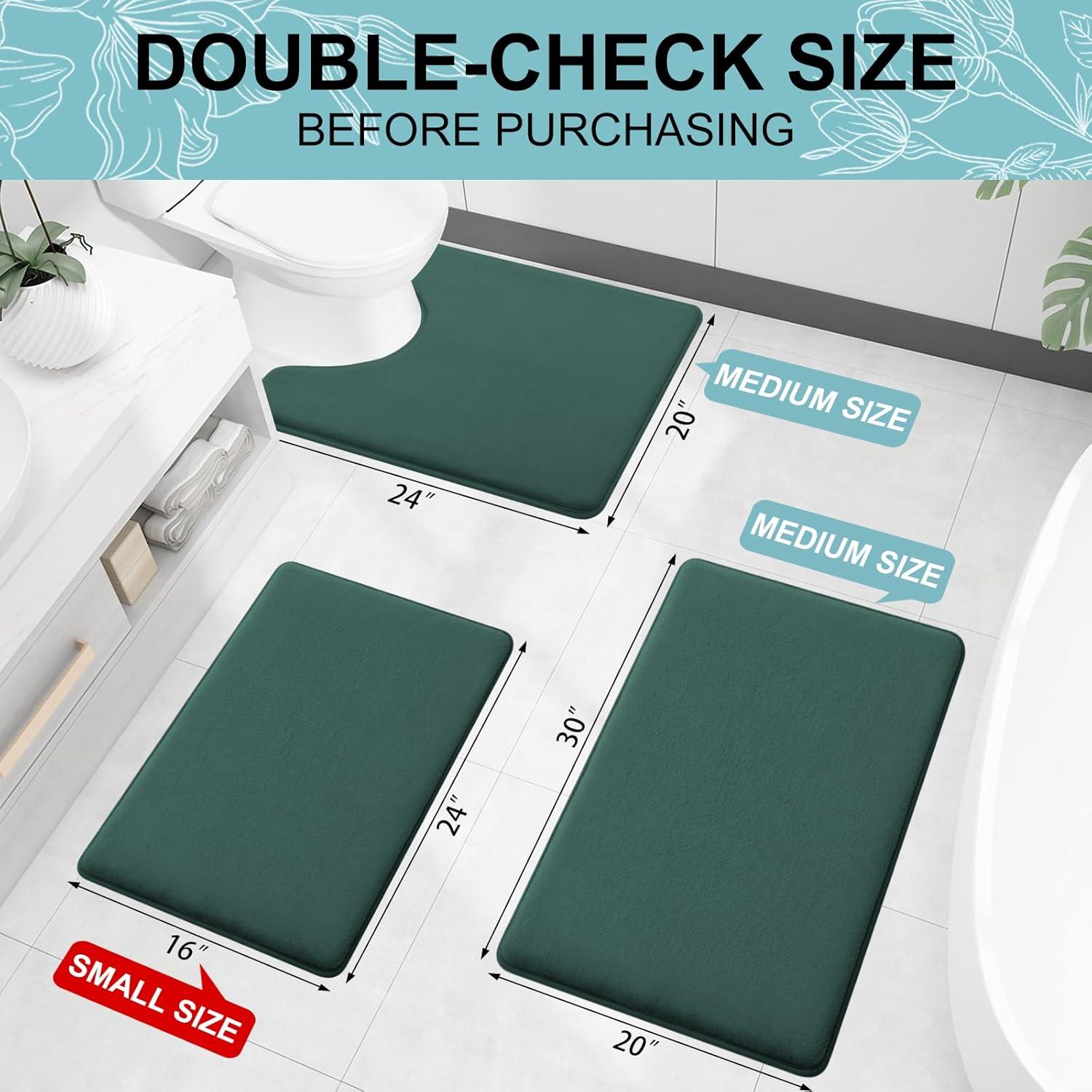imageSmiry Memory Foam Toilet Rugs UShaped 24x20 Extra Soft Absorbent NonSlip Contour Bathroom Rugs Machine Washable Bath Mats for Toilet BlackGreen