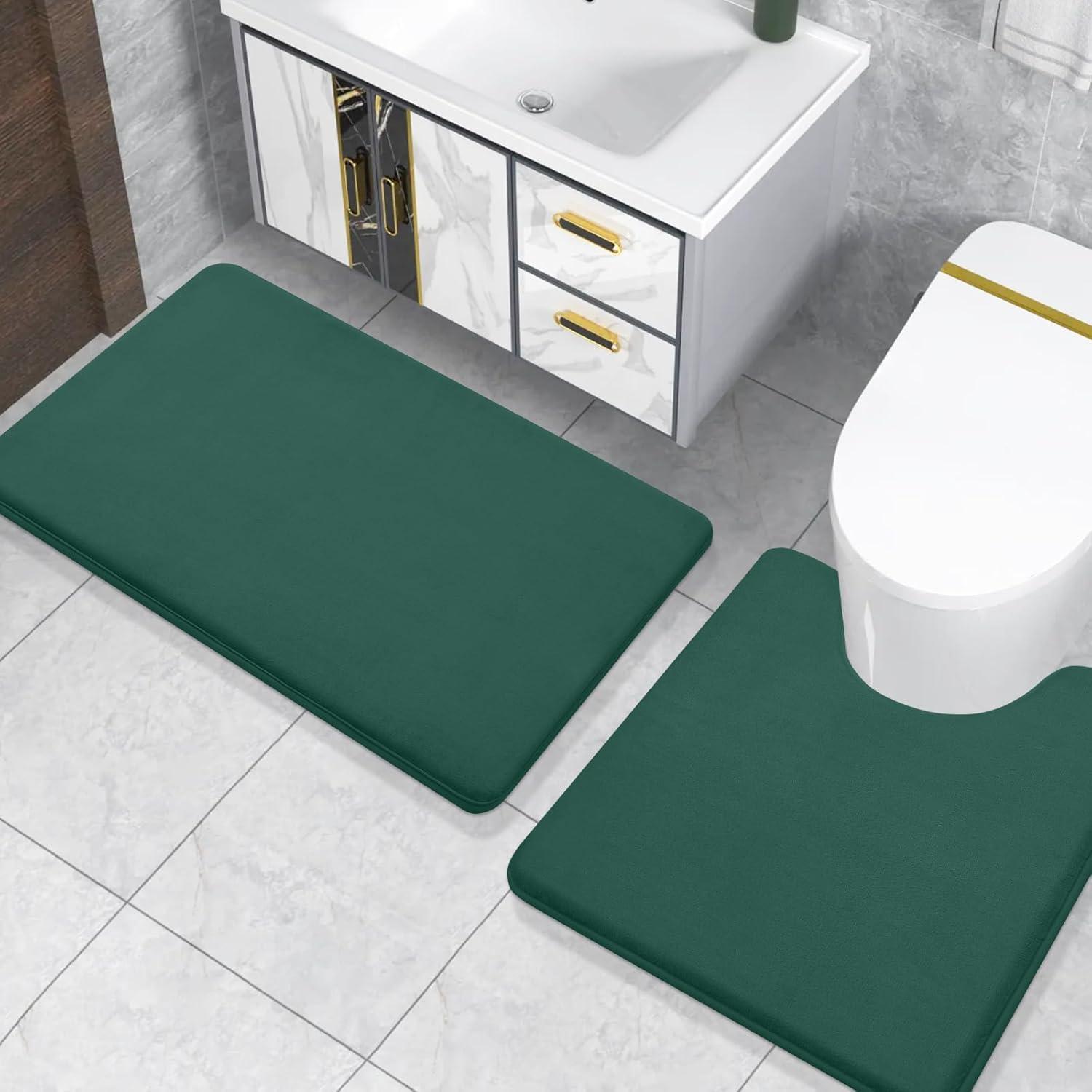 Smiry Memory Foam Toilet Rugs U-Shaped 24×20, Extra Soft Absorbent Non-Slip Contour Bathroom Rugs, Machine Washable Bath Mats for Toilet, Black(Green)