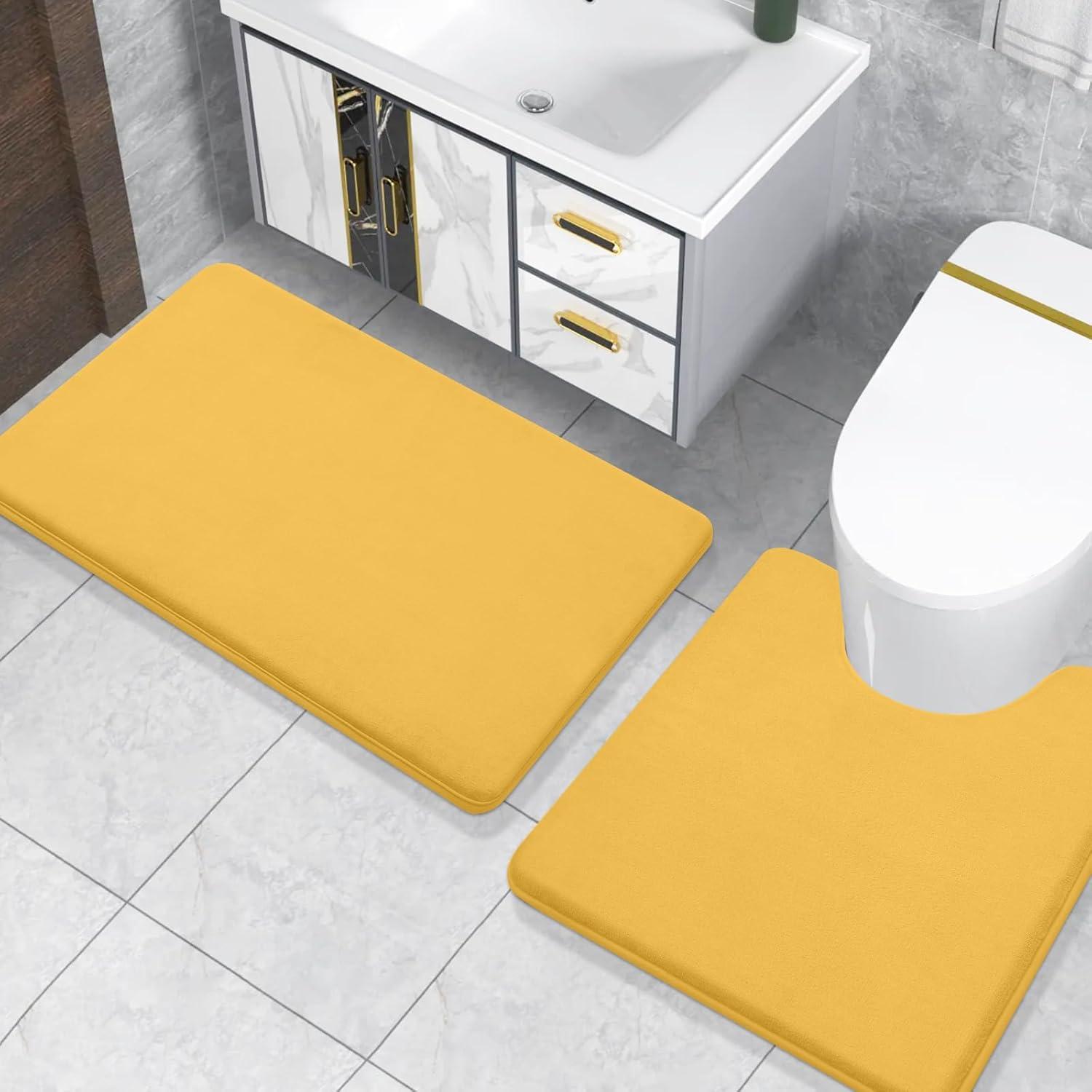 Smiry Memory Foam Toilet Rugs U-Shaped 24x20, Extra Soft Absorbent Non-Slip Contour Bathroom Rugs, Machine Washable Bath Mats for Toilet, Black(Yellow)