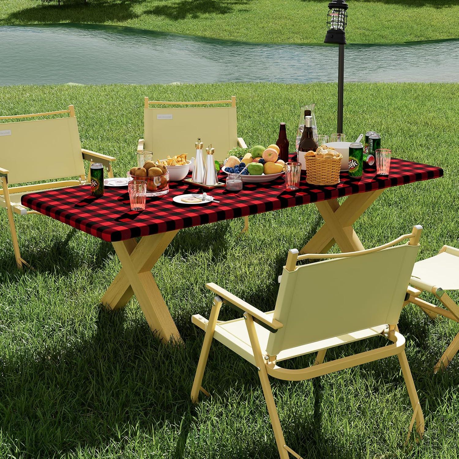 [Windproof & Elastic Edge] Smiry picnic tablecloth's elastic edge ensures a snug fit, eliminating the need for clips or clamps. It stays securely in place, even on breezy days, for hassle-free outdoor meals.