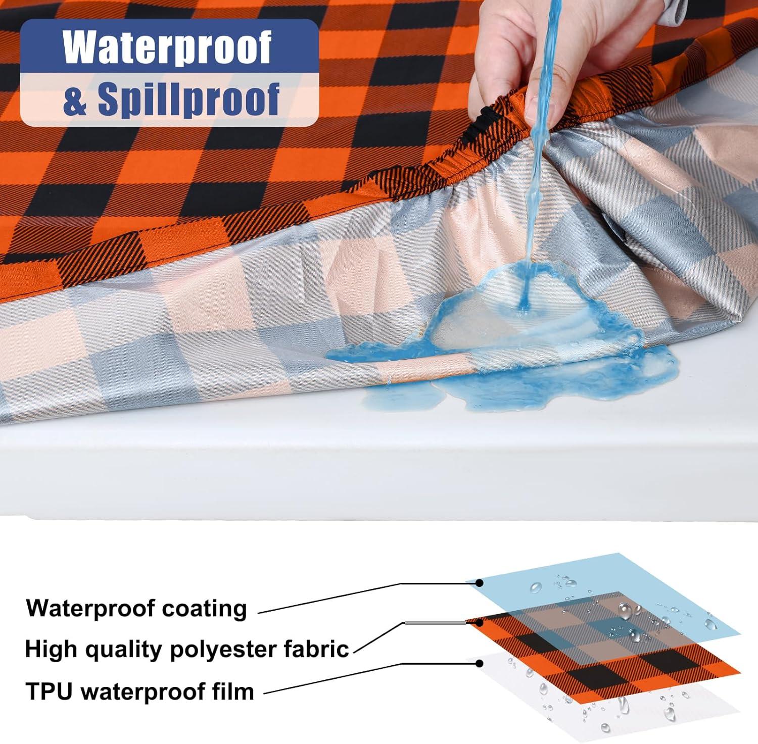 [Waterproof & Spillproof] Our tablecloths feature a double-sided waterproof design, with a spill-proof surface and an additional inner TPU layer that causes spills to bead up instead of soaking in.