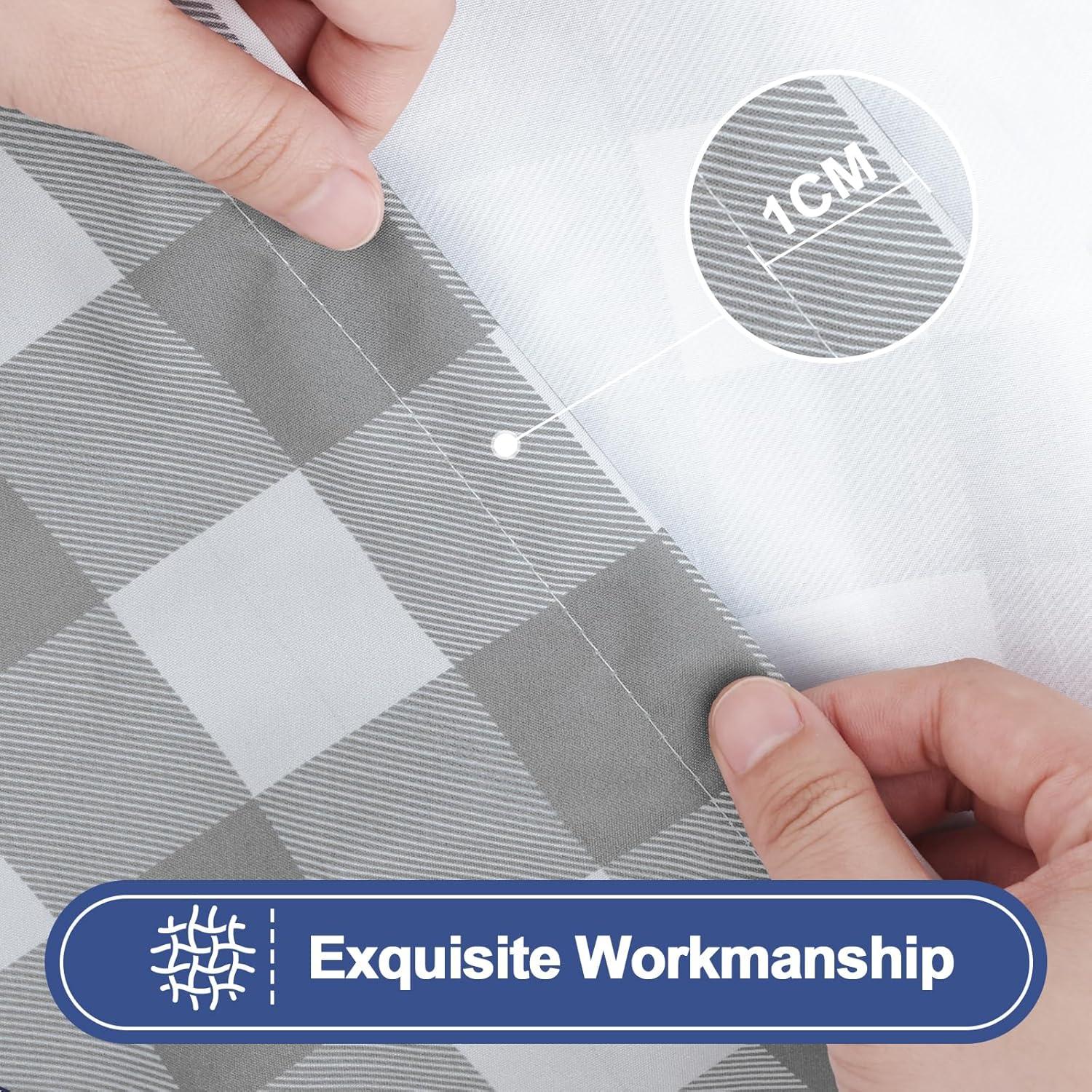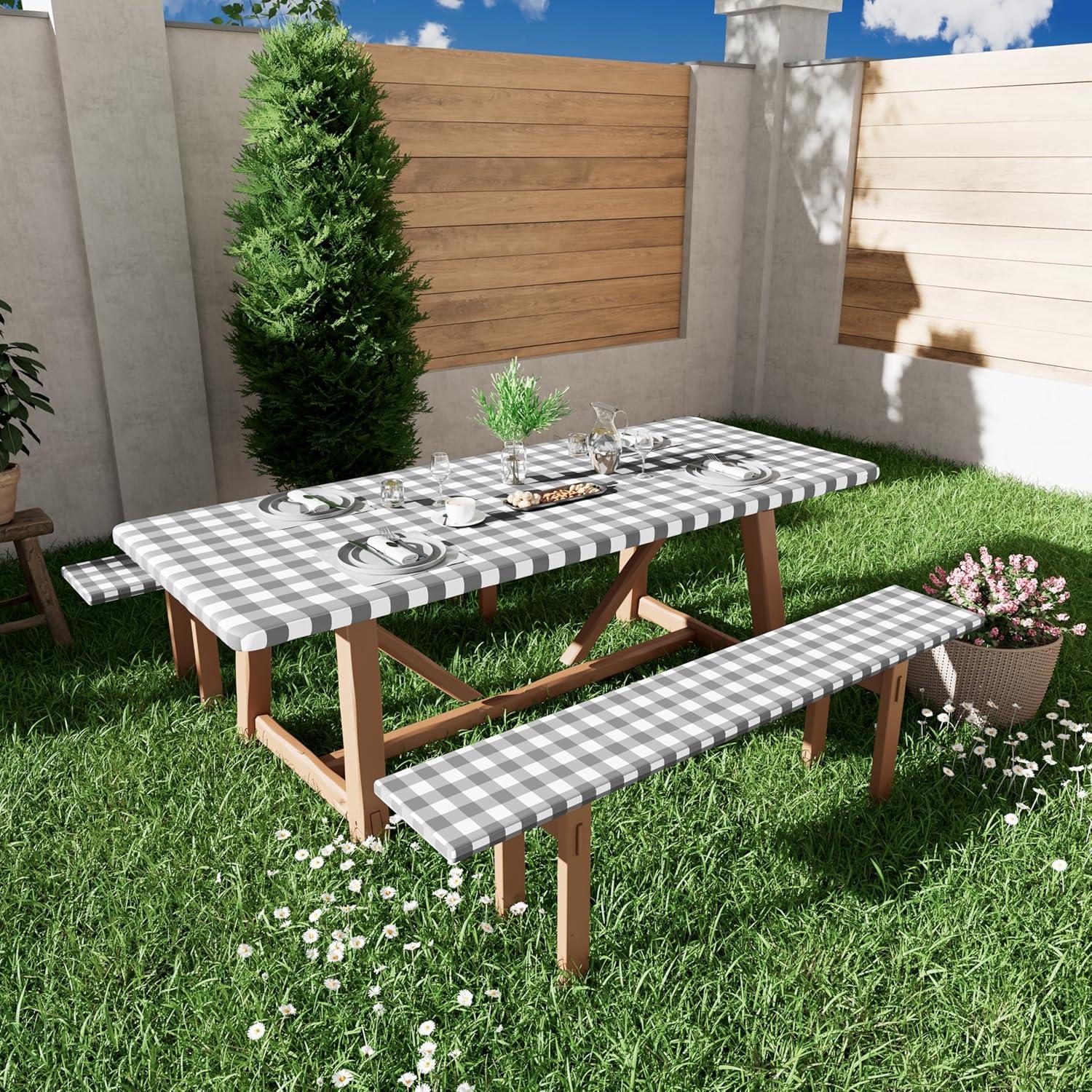 Smiry Picnic Table Cloth 2 Pack, Waterproof Elastic Fitted Tablecloths for 6FT Rectangle Tables, Washable Polyester Buffalo Plaid Tablecloth for Camping, Dining & Outdoor (Black & White, 30" x 72")(Grey and White)