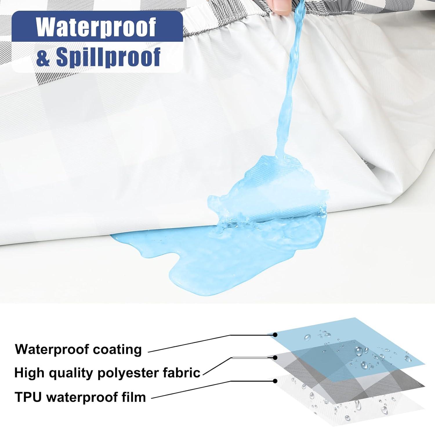 [Waterproof & Spillproof] Our tablecloths feature a double-sided waterproof design, with a spill-proof surface and an additional inner TPU layer that causes spills to bead up instead of soaking in.
