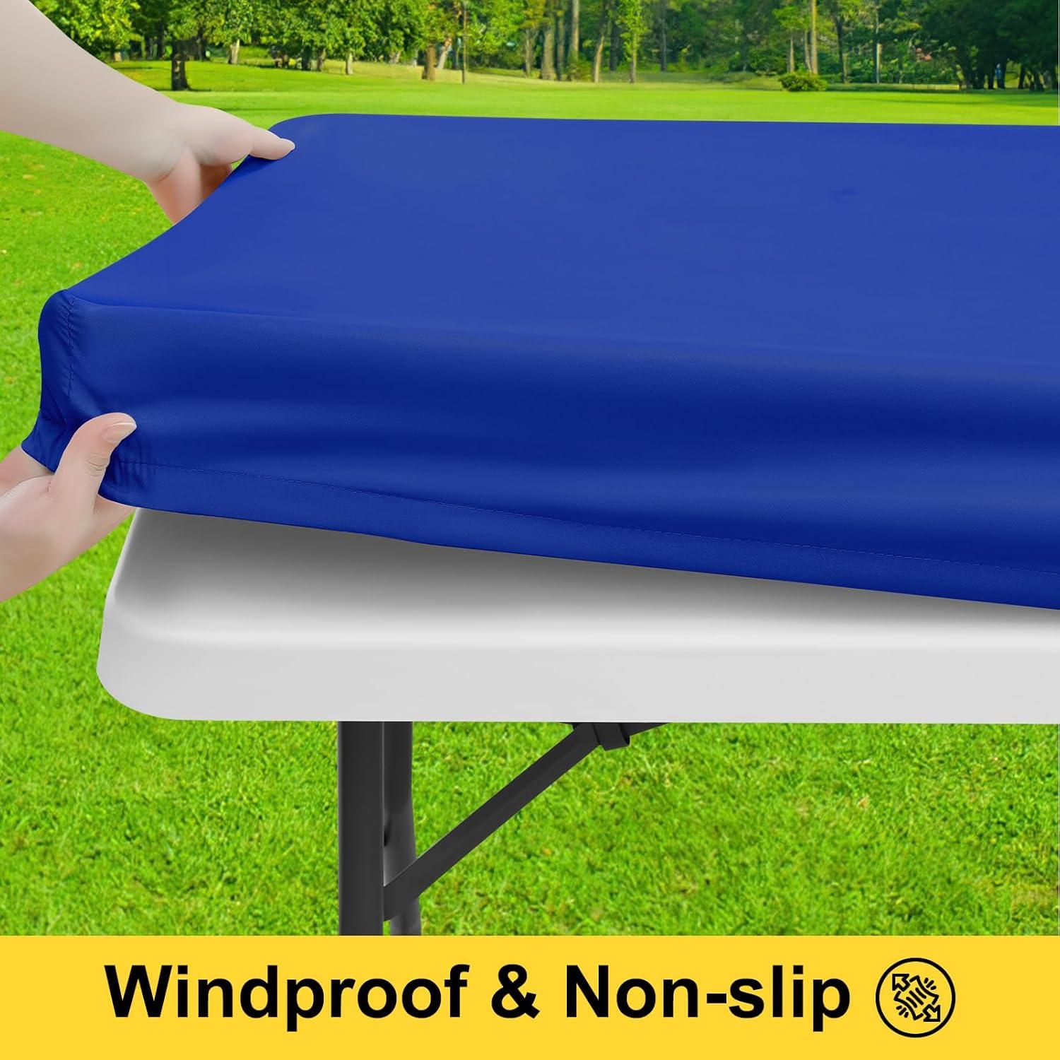 imageSmiry Picnic Table Cover with Bench Covers Waterproof Elastic Fitted Polyester Tablecloths for 6 Ft Rectangle Tables Washable Windproof Tablecloth for Camping RV ampamp Outdoor Black 30x72 InchesBlue
